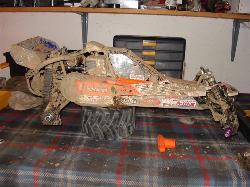 nach ca. 3 Runden mal ein kurzer Boxenstopp, dan gings weiter, Seilzug ging nur noch ganz schlecht, also hackte erst ganz spät ein, dan ist der Baja mir einmal auf dem Dach liegen geblieben und das an der weit entferntesten Kurve der strecke, logisch oder hehe