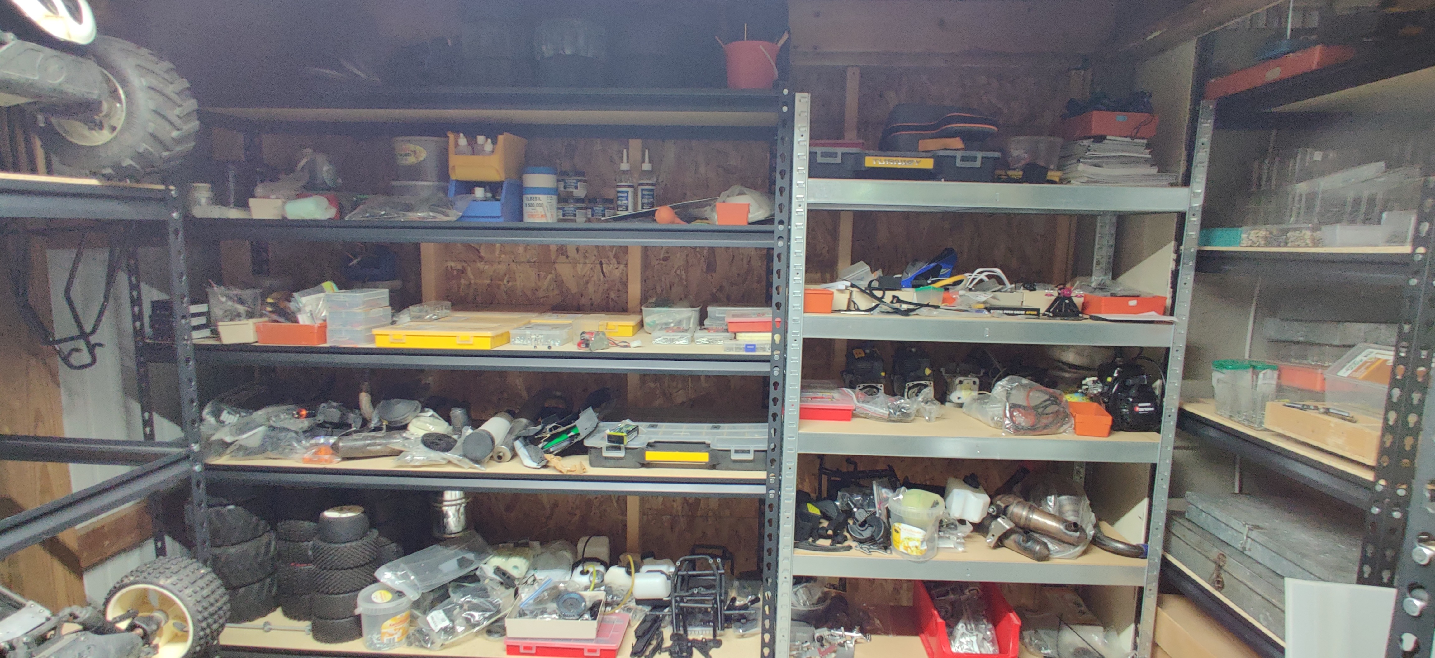 Soll sich aber wieder aendern. Im Moment bin ich an der Bestandsaufnahme, was welches Modell benoetigt und endlich auch mal meine Ersatzteile, die bisher immer in Kartons waren, endlich mal in ein Regal zu packen. Teilweise Dinge mehrfach gekauft oder ersteigert, weil ich nicht wusste, dass ich es schon habe. Geht deswegen auch gleich nochmals in den Baumarkt, brauche mehr Regalboeden