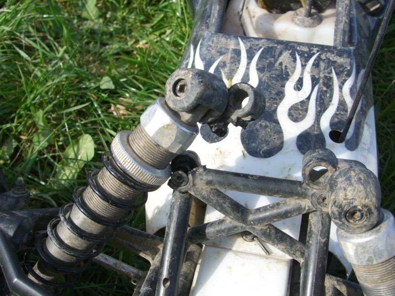 Die Dämpferbrücke sieht aber auch SEEHR Fragil aus für so fette Dämpfer und so ein Fahrzeuggewicht. Hätte HPI ruhig mal etwas stailer bauen können.