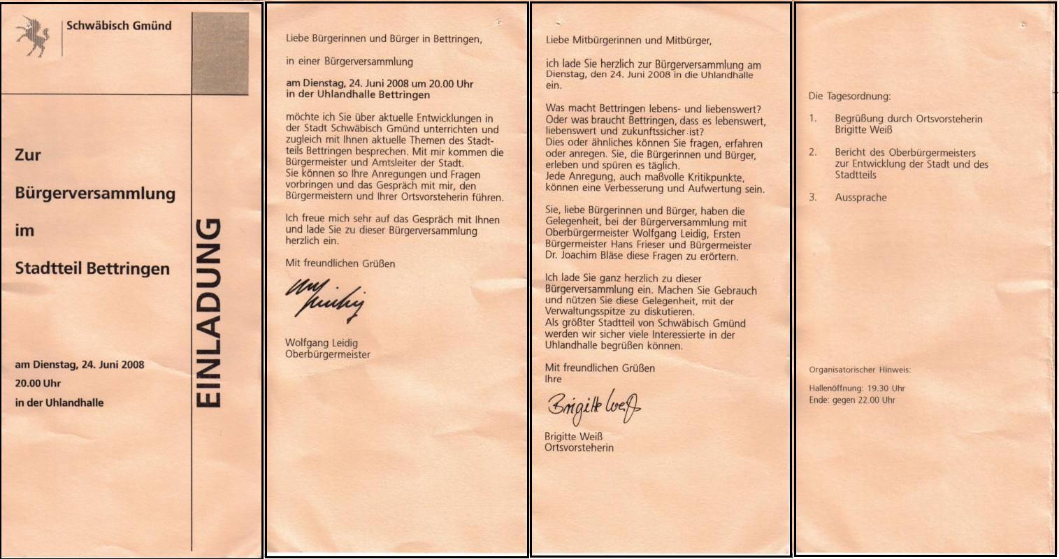 am 24. Juni findet ab 20:00 in Bettringen eine Bürgerversammlung in der Uhlandhalle statt.