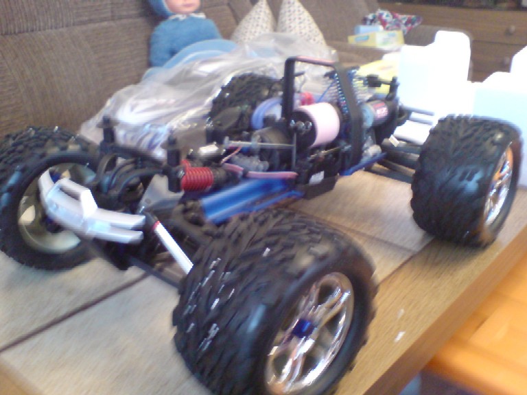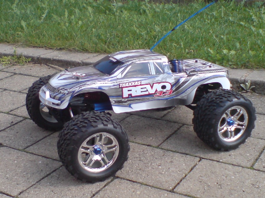 so wie der Titel es schon besagt ist am Freitag den 12. September 2008 mein neuer Traxxas Revo 3.3 eingetroffen da ich aber nicht daheim war hab ich ihn erst heute zu Gesicht bekommen und war sofort hell auf begeistert also so richtig