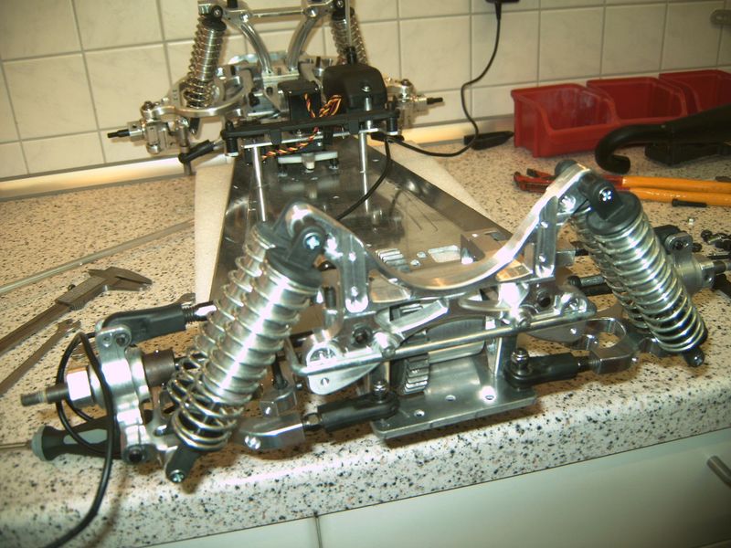 Aber was mir nicht so gefällt sind an der Hinterachse die Plastik Kugelgelenke die würde ich aus Stahl oder Alu machen sonst gehts dir wie mir nach einem Überschlag!