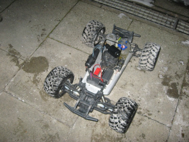 in dieser zeit wurden ca. 35l durchgelassen. Er war mein erster verbrenner. anfangs glaubte ich meinem damaligen händlers des vertrauens noch alles... somit wurde er mit 10% nitro eingefahren und danach mit 16% nitro weiterbetrieben ... das war natürlich motorschonend aber dementsprechend anfangs auhc langweilig war.... irgendwann wollte der motor dan auhc nichtmehr angehen mit diesem sprit... natürlich war das genau in dem moment als ich einen neuen 5l kanister gekauft hatte. also kanister an einen freund verkauft und ab da sind nurnoch 25% nitro durchgegangen. dieser moment traf nach ca. 15l ein. der tnx wurde anfangs schon sehr geschont... es war einfach die angst ein damals noch sehr teures modell zu zerstören. ab liter 20 wurde dann hemmungslos gebasht!!!spuren hat das eigentlich nur an den bulkheads hinterlassen