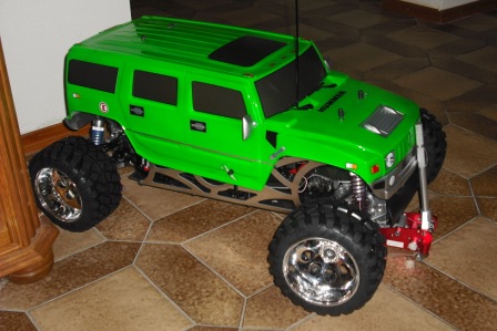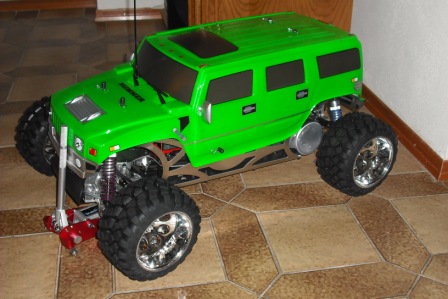 nachdem ich im sommer 08 begonnen habe mit einem 1:10 seben racing auto,ging mir der gedanke nach etwas grösseren nicht mehr aus dem kopf.wollte aber auf alle fälle was zum selber-zusammenschrauben.hab spass dran an der technik und so.nach stunden im netz hab ich dann mal einen hummer vo fg gesehen und die karre ging mir nicht mehr aus dem kopf.wollte zuerst einen rtr aber die gibts ja nur komplett.dachte dann bau ich das ding kompl. auf alu um.nach hin und her rechnen dachte ich dann,da kannst auch einen 4wd kaufen, ich mach was für die wirtschaft.hab dann im netz die shops rauf und runter gesucht,und bin bei motec fündig geworden.is wohl ein netter laden.die haber mir ein gutes angebot gemacht,komlett mit mech.scheibe ,funke xs 6,rhino akkus usw.alles was man braut um das teil zu fahren.hab dann noch ein paar schlaflose nächte verbracht.is doch ein haufen kohle.was solls geld überwiesen und drei tage später bringt der mann von der post ein schönes grosses schweres packet!wow da wahr er.gleich auf gemacht,alles sauber verpackt viele viele teile alles zerlegt "geil" schrauben schrauben schrauben.dann angefangen und was soll ich sagen:fast besser als sex.da werden die nächte manchmal sehr kurz!so das auto machte fortschritte und ich zerbrach mir den kopf über die karo,welche farbe?hab dann bei geiger cars eine echten hummer in grün gesehen,so sollte er werden.