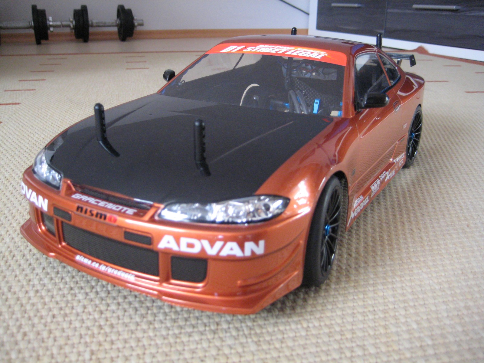 Stabis fahre ich die Orginalen schwarzen von Tamiya vorne und hinten, Reifen fahre ich die LRP-CPX Kompletträder, da diese in der LRP-HPI Challenge vorgeschrieben sind, in Verbindung mit dem LRP Haftmittel für Teppich, zu den Setupeinstellungen, da habe ich verschiedene Federhärten durchprobiert und einige Dämpferstellungen, aber wie gesagt bin erst 2mal auf ner Strecke gewesen. Nächsten Sonntag wollen wir wieder hin und weiter einstellen.