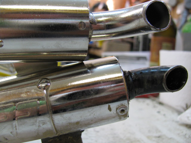 bestimmt jeder der ein großmodell fährt hat sich schon gefragt ob diese billigen resos, die in großen mengen in der bucht vertrieben werden, auch was taugen. für insgesamt 27 euro habe ich mir solch einen nachbau ersteigert weil es mich interessiert hat ob das was taugt und ob es an die leistung des originals rankommt. als ich das ding ausgepackt habe traf mich erst mal der schlag weil die schweißnähte mal sowas von schlecht sind das ist unfassbar. von den abmaßen ist es optisch nicht schlecht gelungen aber wenn man mal genauer hinsieht dann fällt einem sehr schnell auf das der ein oder andere bogen anders läuft was zur folge hat das der schalldämpfer schräg sitzt. auch am außlass ist gut zu erkennen das das eingesetzte runde blech nicht passgenau ist und vernietet ist es auch nicht. das original jetpro ist ziemlich passgenau aber selbst beim originalen sifft das zeug duch jeden noch so kleinen spalt auf den motor daher habe ich das mit silikon abgedichtet. am meisten hat mich jedoch der einlass des aupuffs fasziniert. jeder auspuff und selbst die kleine originaltröte hat einen einlass der genau so groß ist wie das auslassfenster am zylinder also in der größe vom jetpro. das faketeil ist deutlich kleiner und das ist wohl der gravierendste punkt an der ganzen sache. reingeschraubt hab ich das teil nicht. werde es also am montag wieder zurückschicken und in zukunft die finger von dem schrott lassen und meine beiden großen haben ja schon vernünftige resos