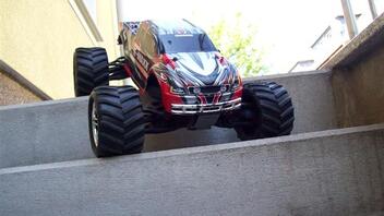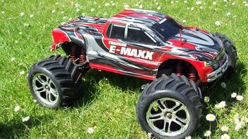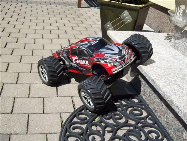 Wie schon die Überschrift verrät ich fahre einen E-Maxx. Er fand letztes Weinachten zu mir. Ich habe schon viele Eastzteile kaufen müssen, dabei war hauptsächlich Originales. Gegen die Original Teile habe ich lediglich die Schwingen vorne (RPM) und ebenfals vorne die Bulks gegen alus (FLM) getauscht. Außerdem darf ich eine LRP c3 stx pro mein eigen nennen. Im Moment kann ich leider nicht fahren, weil meine Motoren kaputt sind. Das wird sich aber nächste Woche ändern. Bilder werden folgen.