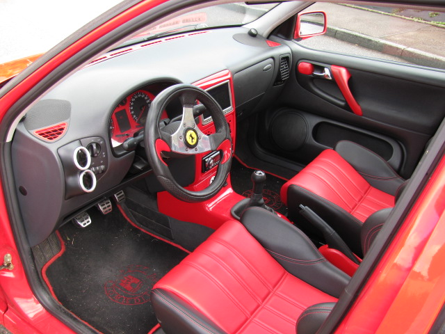 1.8T 20V motor ursprünglich verbaut in einem Audi TT ; Bremsanlage hinten vom Polo 6n GTI vorne Rally-Golf 2 G60 ; BN-pipes Edelstahl anlage ab kat ; 100Zellen sportkat ; chip auf 200PS ; Edles König sportgestühl in der vorderen reihe, rücksitzbank original aber ebenfalls von könig gesattelt ; Hifi mit dvd player, leistung mehr als ausreichend ; mittelkonsole eigenbau selbst laminiert, genau so wie die einfassung der uhren über dem lichtschalter, die vordere stoßstange ist übrigens auch eine eigenentwicklung und gibts so nicht zu kaufen. früher war die karre mal richtig schön tief mit 14Zöllern aber jetzt geht das leider nicht mehr da die bremsanlage auf der vorderachse mindestens 15zoll erfordert. das ganze ist allerdings nur was fürs wochenende und für schönes wetter, sonst fahr ich meinen 12 jahre alten audi a3 quattro mit dem gleichen motor nur eben ohne chip und dann kommen gerade mal 180 pferde raus. dafür hab ich im audi nen Lpg umbau und kann günstiges gas tanken