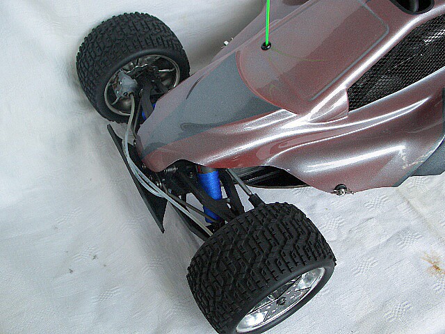 Habe ihm eine "Raptor Karo" verpasst......eine hydr. Vorderradbremse....selbstgebaute "Spinners" eine doppel Boostsystem(hatte schonmal darüber kurz berichtet).....einen 260 Motor......usw.usw.