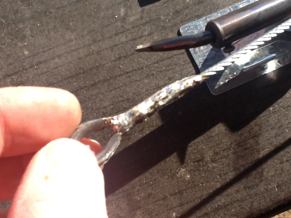 Naja zu Hause dann mal den neuen 100watt lötkolben angeworfen und wie im Karosseriebau mal mit Zinn gespielt, hier war's Lötzinn