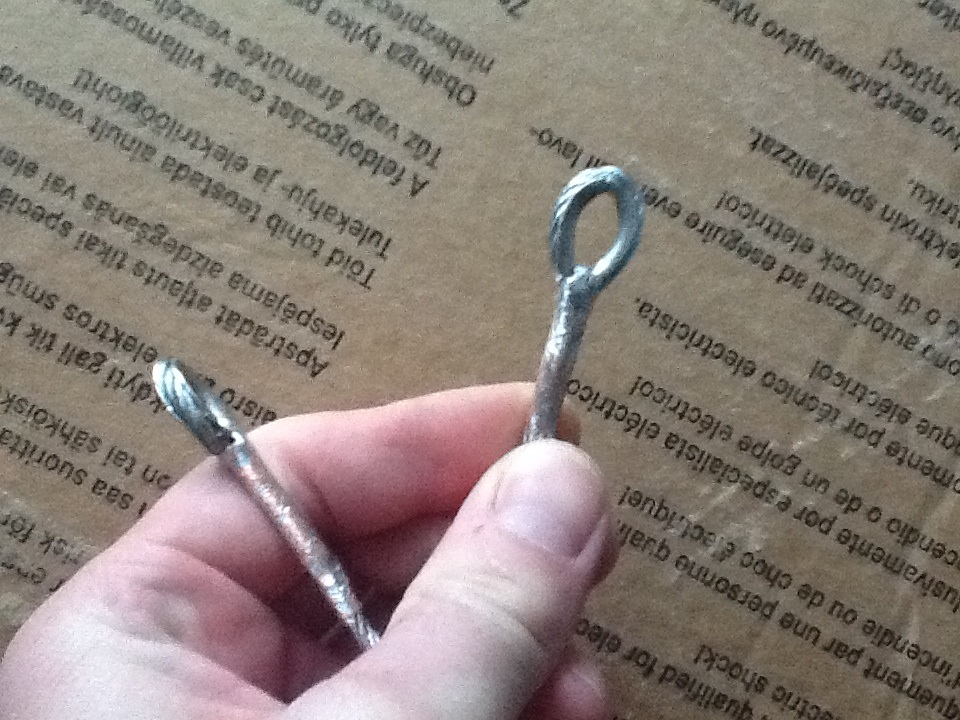 Als erstes hab ich das Seil von den verpressten Alu blomben befreit, zwei Schnitte und ne Zange nen Brenner und Lötzinn für die enden.