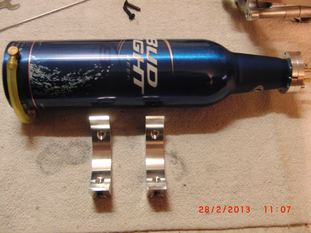 So gestern ist bissl was gekommen:Venturi,Alu-Isolator mit Druckanschluss für die Wasserpumpe, Motorhalter mit Gasanlenkung,Glocke und Kupplungsbeläge......und mein Z-Drive,muss ihn noch auf 10 Grad Schräge Fräsen da mein Heckspiegel nicht gerade nach unten verläuft.Was mir gut gefällt das er die optimale grösse hat, und das die Wellensicherung gleichzeitig zum Fett einfüllen für die Welle genutzt werden kann. ![]()