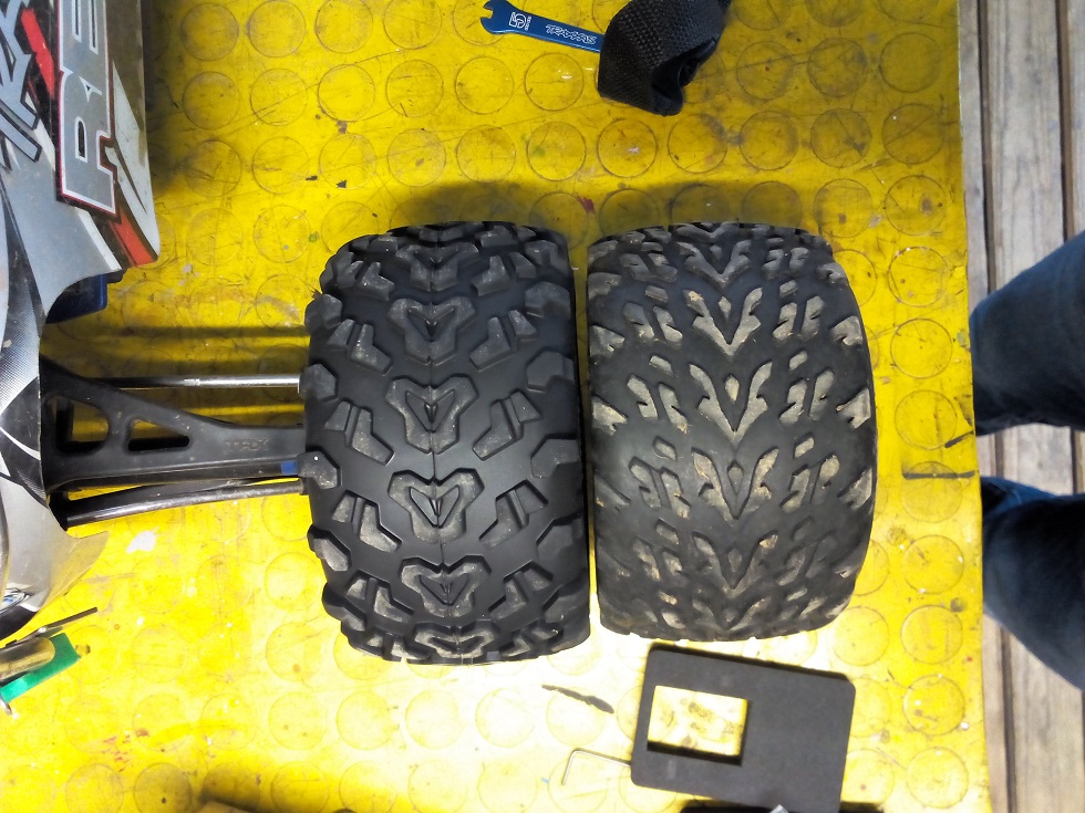 Die Reifen sind top! Geben dem Revo ne breitere Spur, haben mehr Durchmesser und die Felge ist um den Mitnehmer rum auch wesentlich stabiler als die wo ich davor hatte. Grip ist auch im Übermaß vorhanden.