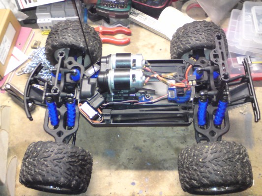für das Kompliment, mir gefällt er in Schwarz auch viel besser. Überrollbügel würde von der Person der der E-Maxx davor gehörte selbst gebastelt, die untere Platte ist einfach eine aus Alu, und das Gestänge ist aus Kupfer (wahrscheinlich weil es sich besser Löten lässt). Ich habe das ganze dann nur noch Schwarz lackiert (war davor grau).