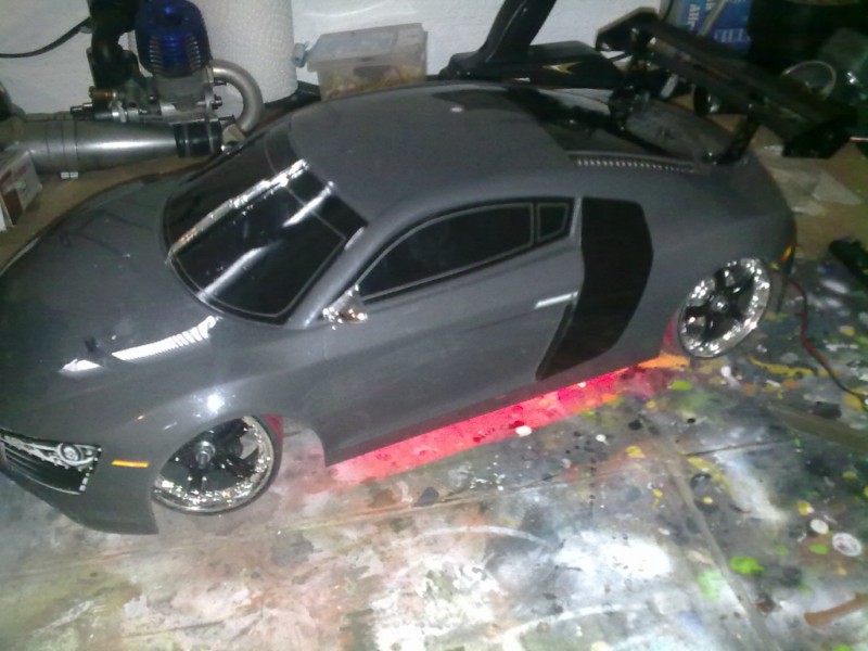 Den Audi R8 habe Ich auf Bl umgebaut,und muß echt sagen super Power.Die Stosdämpfer und Federn habe ich auch erneuert.An der Karro habe ich Außenspiegel montiert,einen Scheibenwischer,und zwei Doppelaußpuff blender,und zu guterletzt eine Unterbodenbeleuchtung.