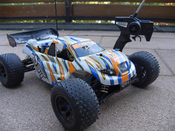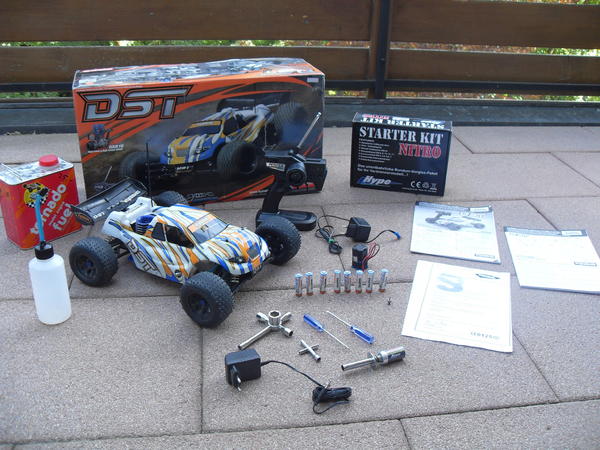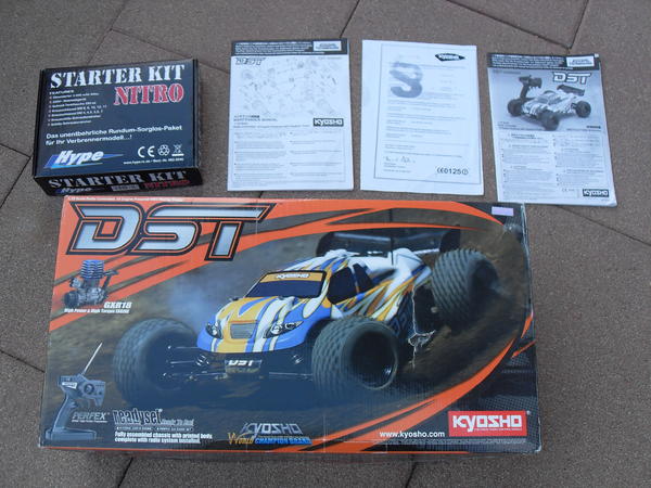 biete hier mein Kyosho DST Verbrennerauto. Das Auto ist vollfunktionsfähig und in einem guten Zustand. Es ist sofort fahrbereit. Technische Daten: - 4WD Offroad Truggy - Mini-BigBlock GXR-18 Motor mit Resonanzrohr fahrfertig aufgebautes ReadySet mitPerfex-Fernsteuersystem, hochwertige Digital-Servos auf Gas-Bremse & Lenkung permanenter, kugelgelagerter Allradantrieb Pivotball-Aufhängung an der Vorder- und Hinterachse BigSize-Öldruckstoßdämpfer Xtra-Volume-Tank mit 105 ml für lange Fahrzeit High-Grip Spike-Reifen Zubehör: Funk Fernbedienung, hochwertiges 16%tiges Nitro von Tornado, 8 hochwertigen Sanyo Akkus mit 2500 mAh, Empfänger Akku mit 4 hochwertigen Sanyo Akkus auch 2500 mAh und das Netzgerät dafür, 2 Glühkerzen, Starterset (Glühkerzenstecker 3000 mAh und das Netzladegerät dafür, Schnelltankflasche 350ml, 2 Kreuzschlüssel, Kreutzschlitz- und Schlitzschraubendreher) und die Orginalverpackungen.VHB : 170 Euro