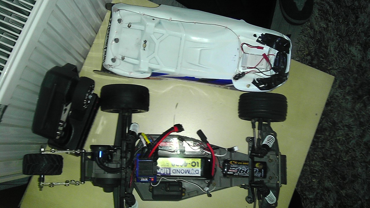mein rustler mit kleinen umbauten : leds , wheele bar, lüfter an motor und regler und spoiler