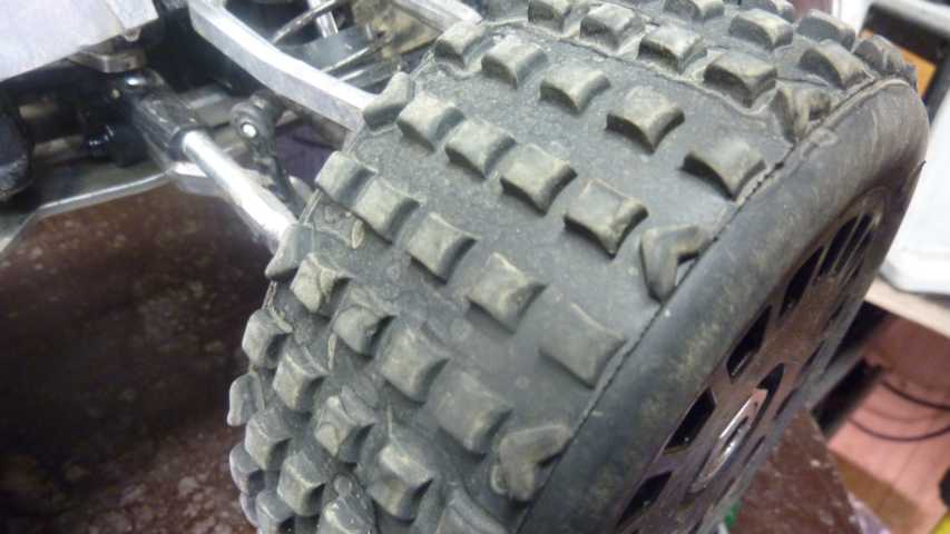Welches Öl jetzt in den Dämpfern ist kann ich nicht sagen, da habe ich 1500, 2000 und 2500 Öl. Aus Erfahrung würde ich vorne auf 2500 und hinten 2000 Öl tippen. Auf dem Teppich lag er sehr gut, nur auf den unebenen Stellen hoppelte er etwas viel. Reifengröße ist 155mm, habe aber auch 180mm da.