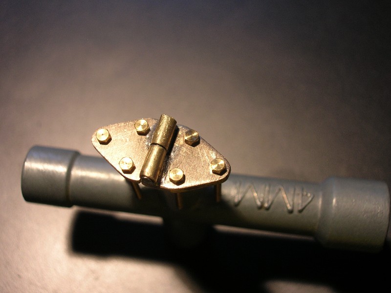 Die sind aus Messing.Habe die "Grundplatten" aus nem Messingprofil gesägt,gefräst,gebohrt,geschliffen,gefeilt...und dann ein 2er Messingrohr mit 1,4mm Innendurchmesser draufgelötet.Als Achse habe ich einen gekürzten Nagel genommen der genau 1,4mm im Durchmesser ist