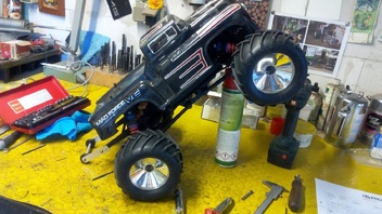 Wiegt mit Karo und ohne Akku ziemlich genau 3,9kg. Wird wohl ein gutes Stück leichter als der Revo. Da das Getriebe in der Mitte komplett rausfällt wird da auch ned so schnell was verecken.