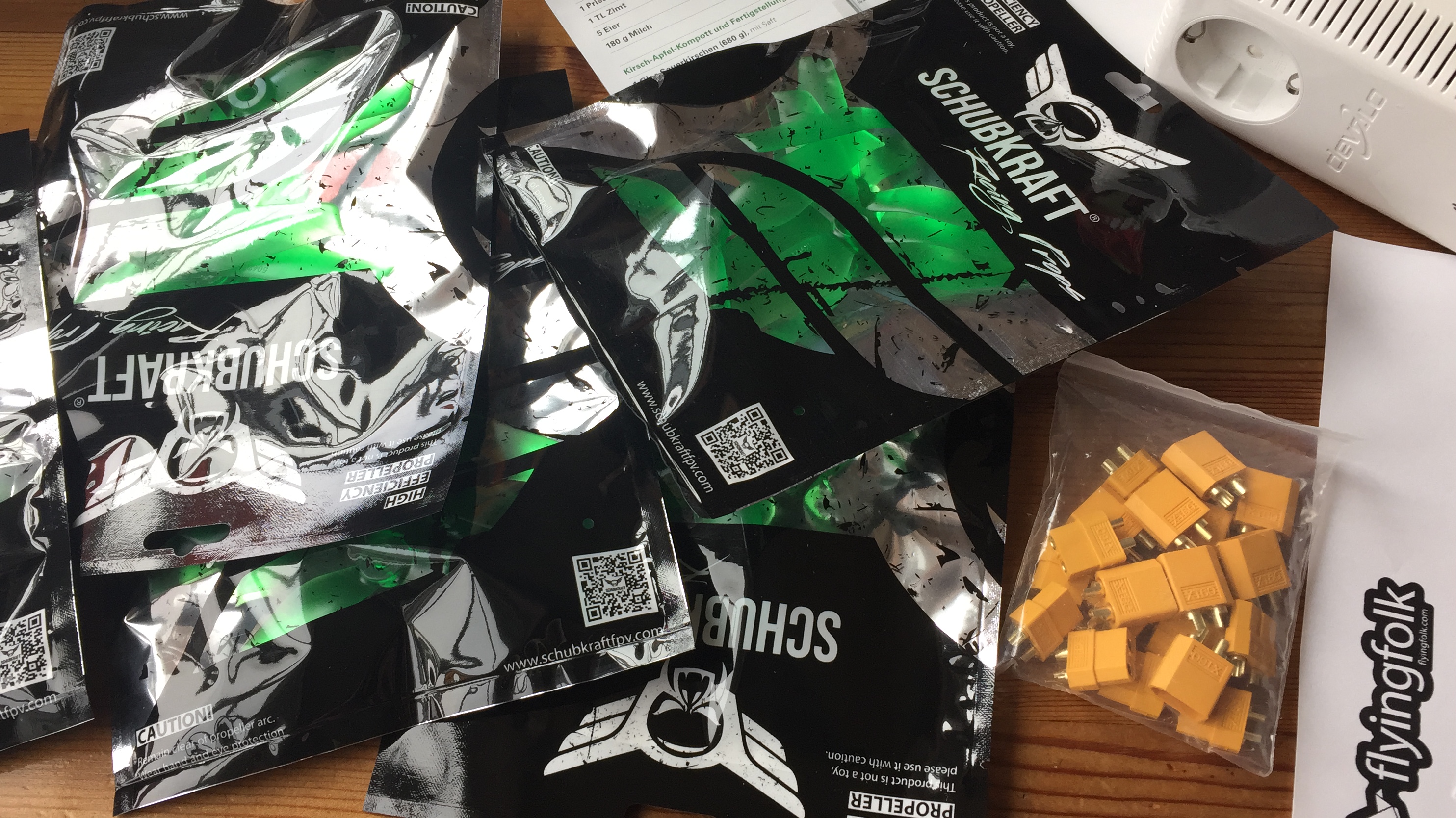 • So, es gab ein Furious FPV True-D Diversity Modul für meine Fatshark und 10 Sätze neuer Props in unterschiedlichen Farben.