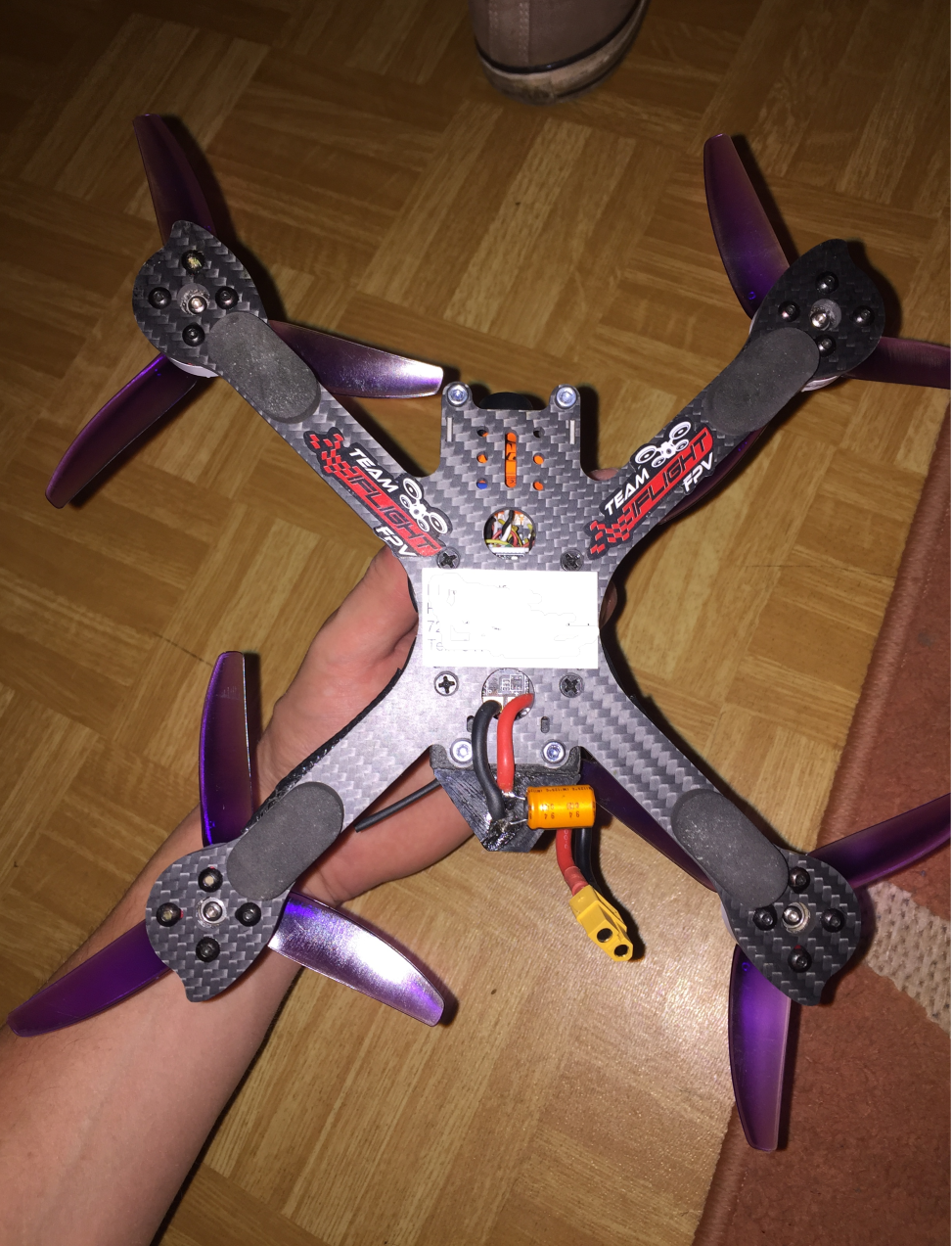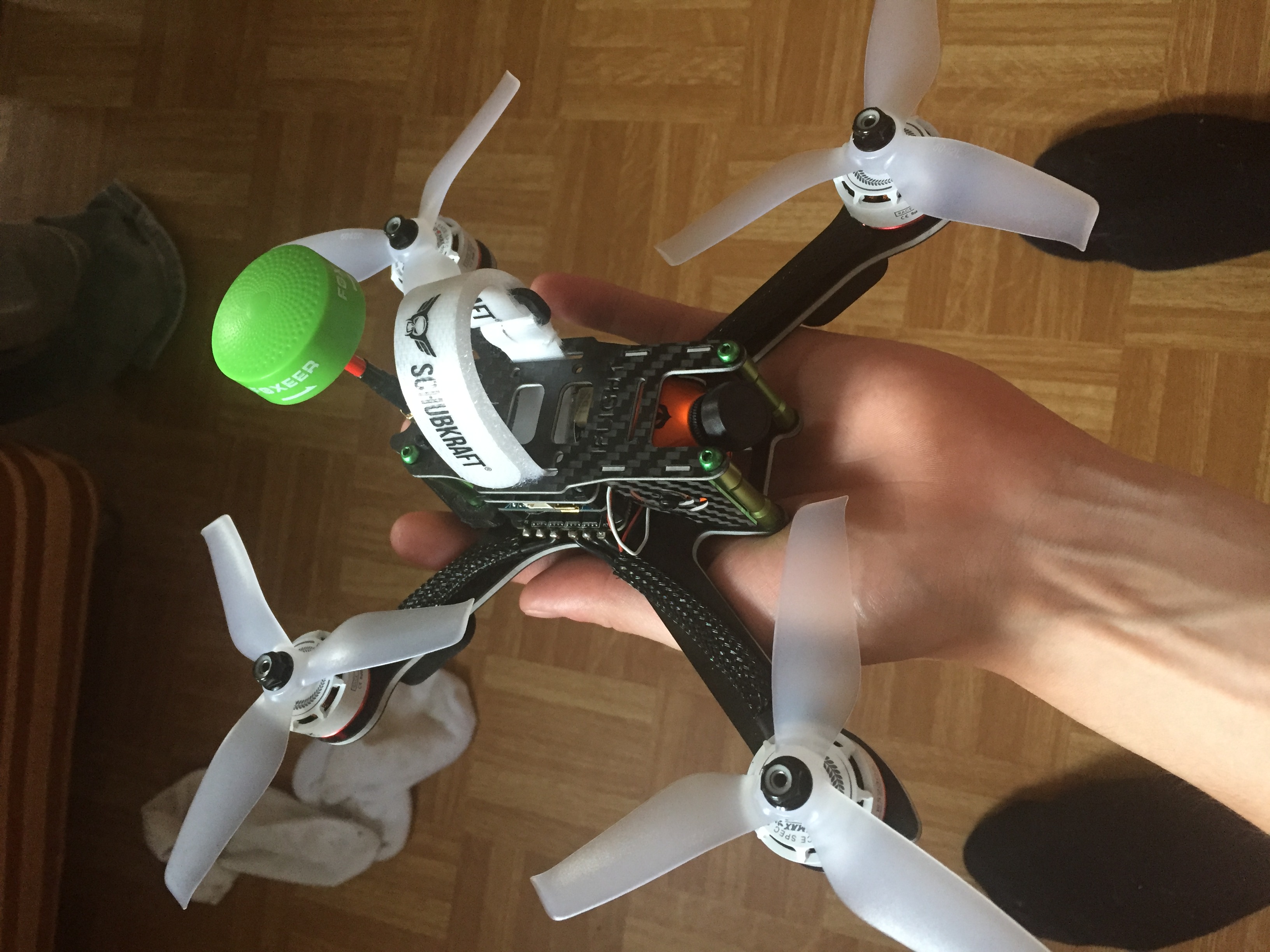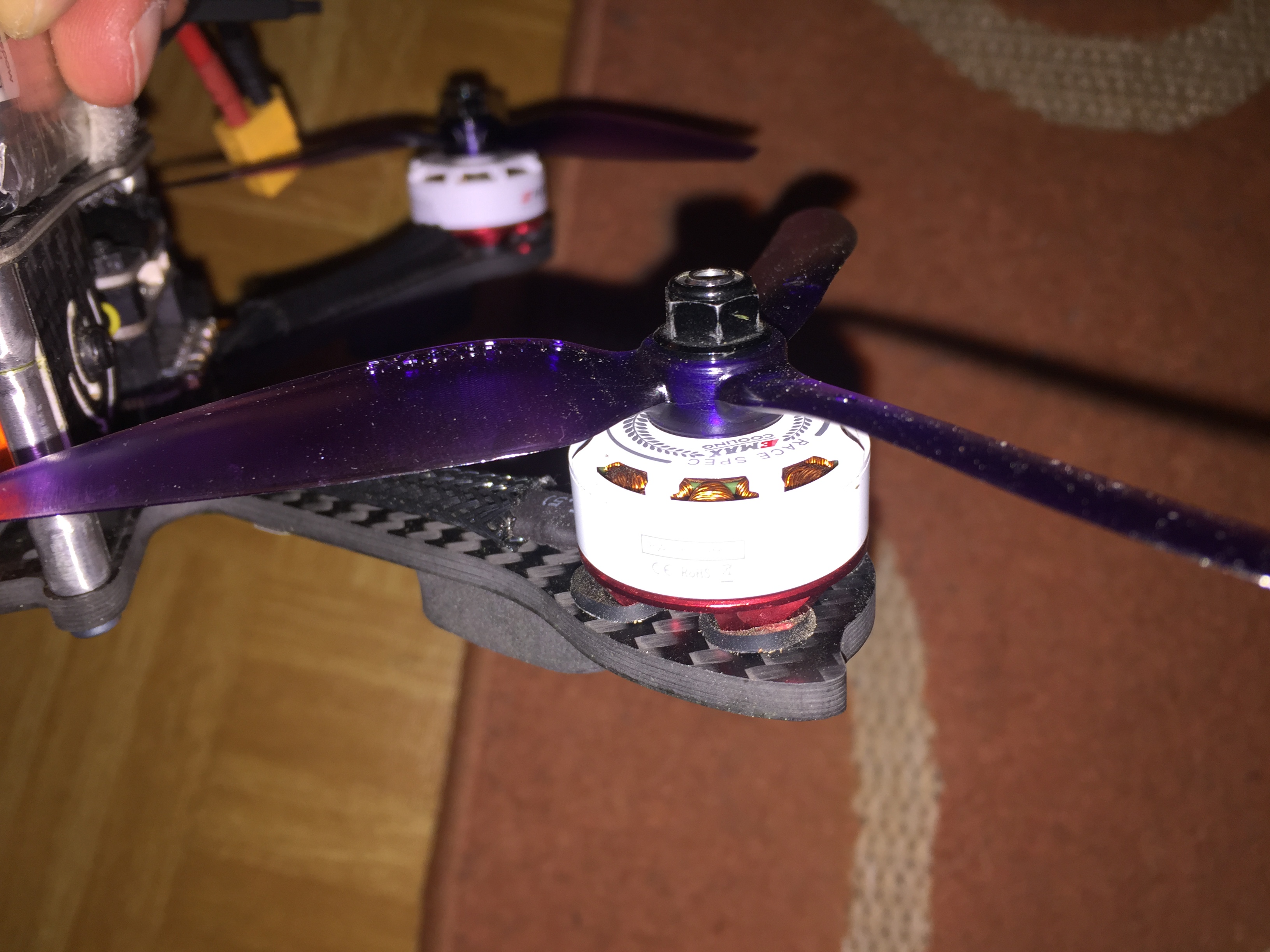Joaa, anfangs hatte ich noch transparente Schubkraft Props dran, dann grüne und nun hab ich (noch) Lila HQ Props (Die Marke fliegt jeder :D)