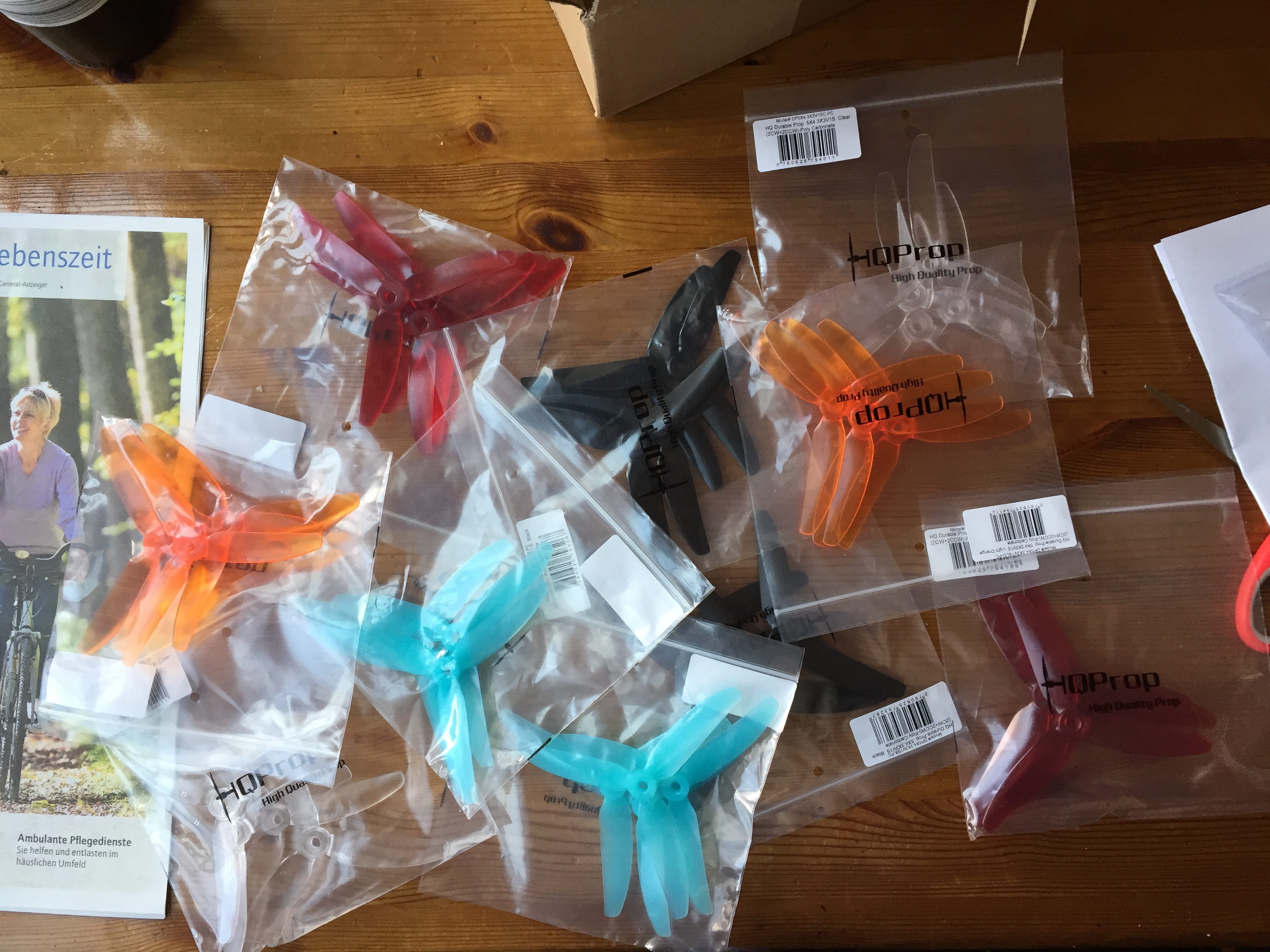 • So, es gab ein Furious FPV True-D Diversity Modul für meine Fatshark und 10 Sätze neuer Props in unterschiedlichen Farben.