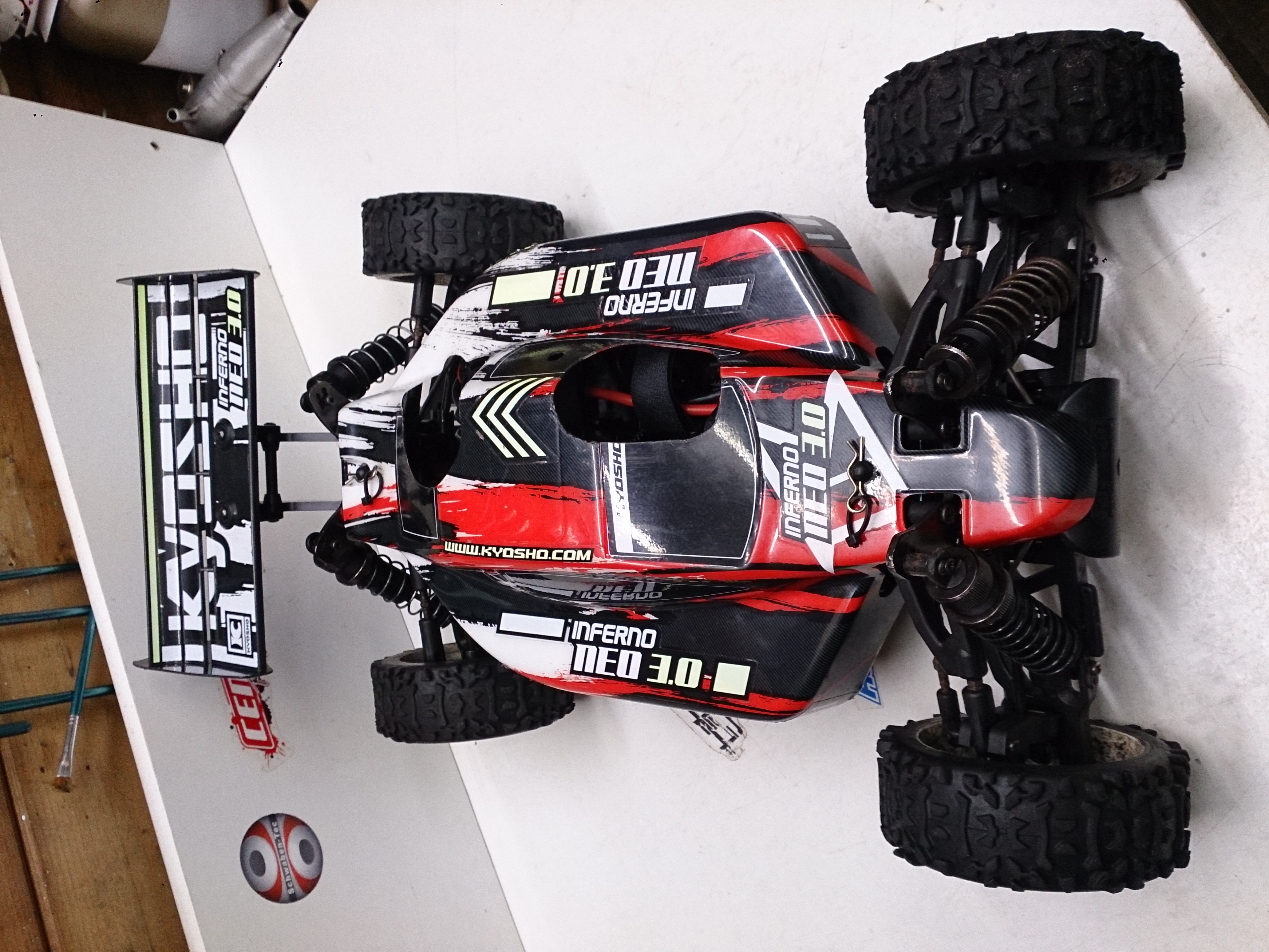 Hallo Leute. Ich habe heute meinen Kyosho Verbrenner in ein Elektrofahrzeug umgebaut. Da ich in dieses Fahrzeug schon viel Geld investiert habe, kam für mich ein Verkauf nicht in Frage. Die Elektronik hatte ich schon da. Ich brauchte also nur noch den Umbausatz. Alles in Allem gingen für den Umbau fast 3 Stunden drauf. Aber es ist gut geworden. Das was noch fehlt ist eine neue Karo. Aber das hat noch Zeit.