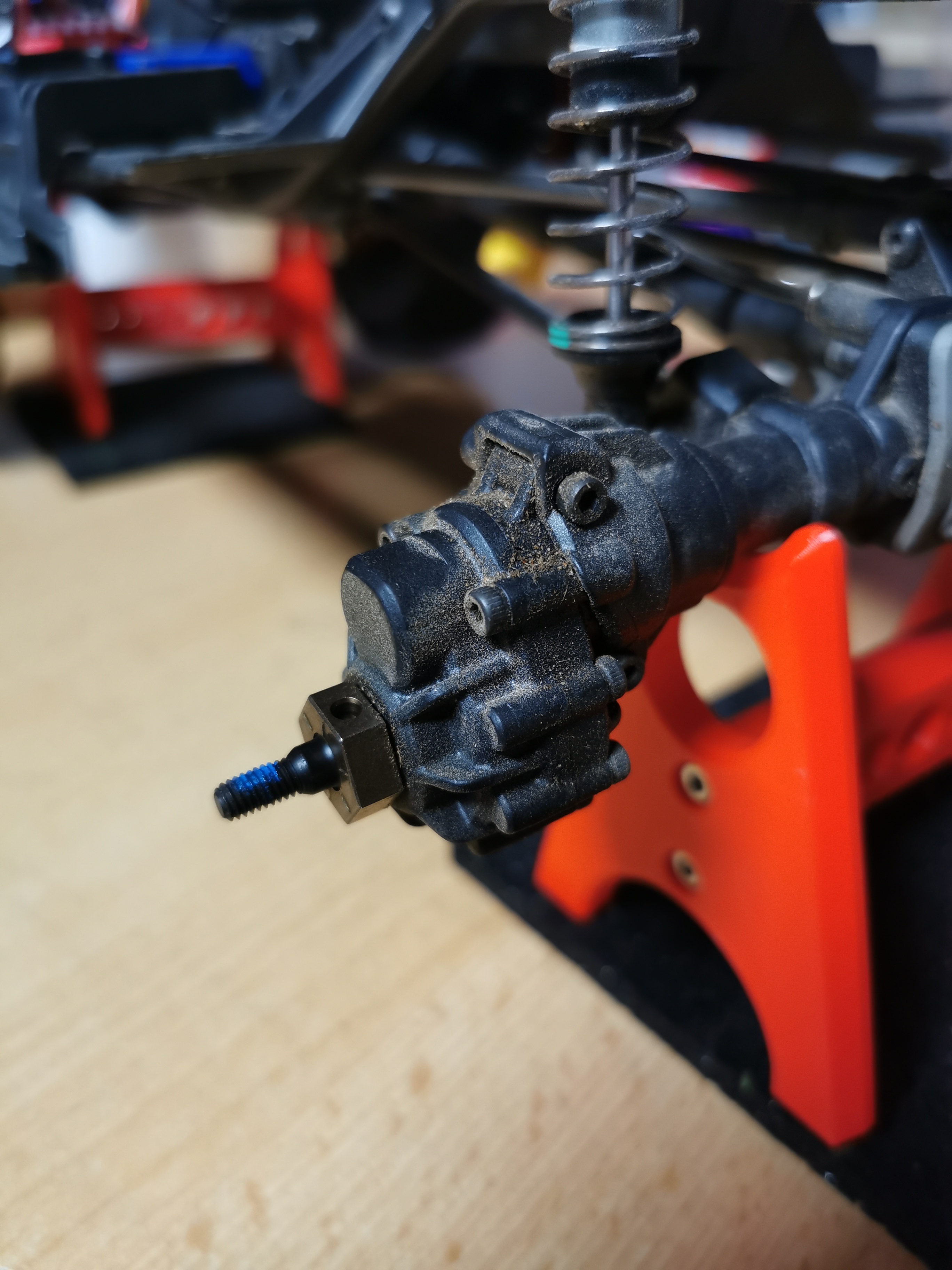 Ebenso an der Hinterachse, hier ist das Portalgehäuse nur mit 2 Schrauben an die Achse Geschraubt