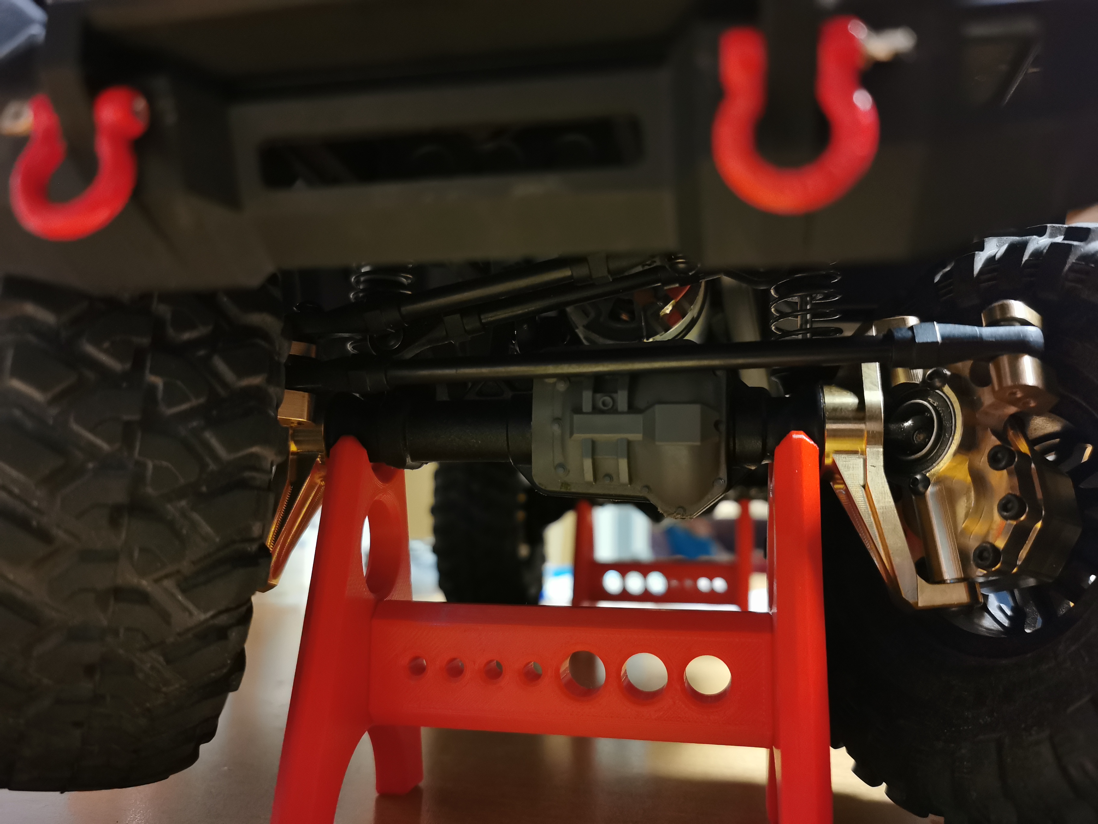 Da der TRX4 einen Hohen Schwerpunkt hat durch den Zentralen Akku/Regler/Motor/Serovs etc. Fehlt Massiv Gewicht an den Rädern.