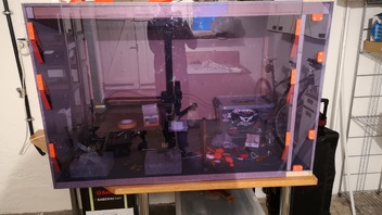 Dann der Anycubic Chiron welcher in einer Umhausung im Keller steht. Material zusätzlich in einer Trockenbox mit Entfeuchtungsperlen.