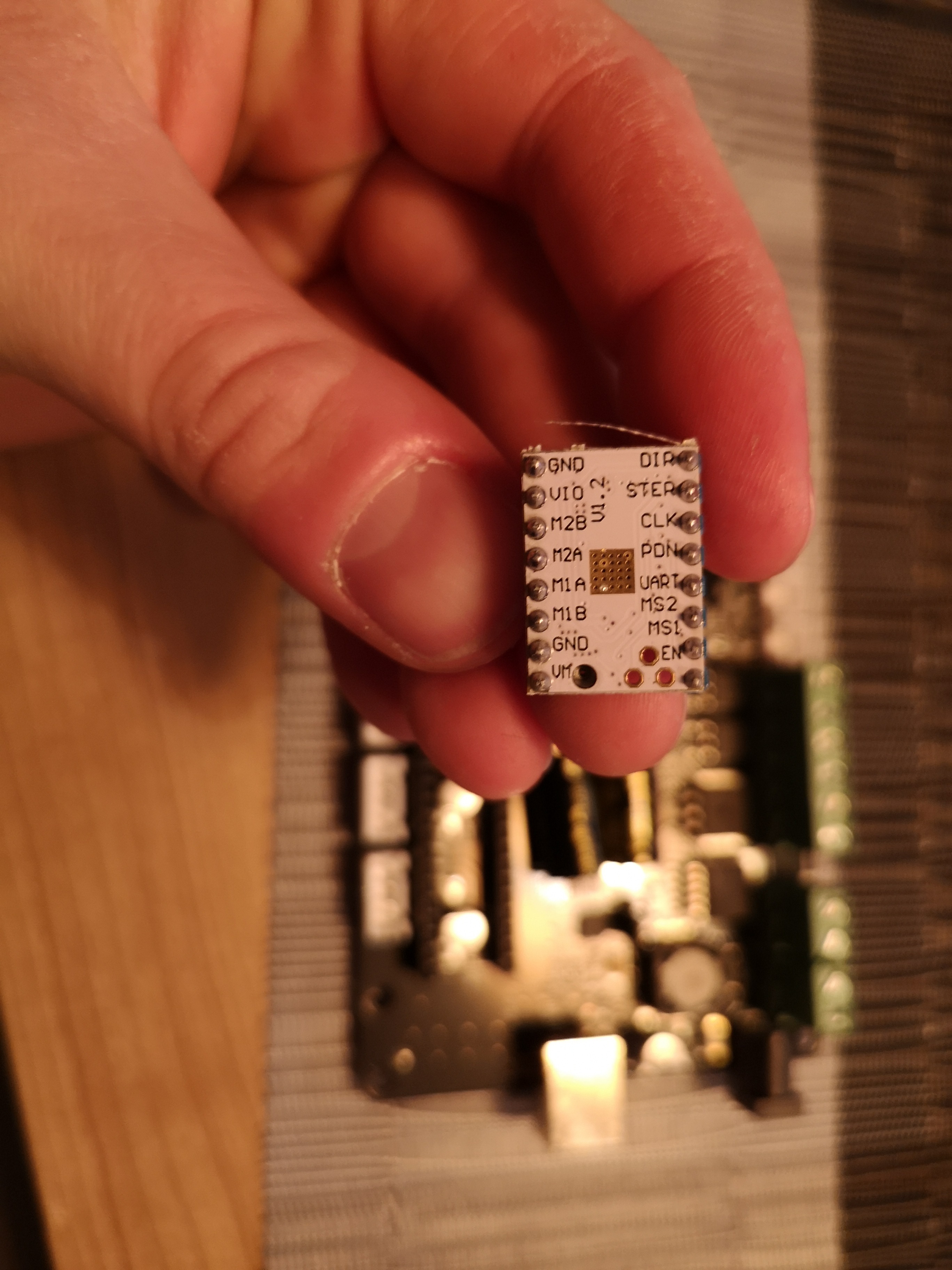 Also alle Achsen mal angefahren. X und Y waren gut und bei Z hat sich nur ein Motor bewegt. ALso Stecker kreuzgetauscht und der Fehler ist mitgewandert. Zum SChluss noch die Treiber kreuzgetauscht und der Fehler wanderte genauso mit. So konnte ich ausschließen dass es am Board oder defekten Motor lag. Es war schlicht und ergreifend ein neuer Motortreiber schon vorm Einbau defekt...