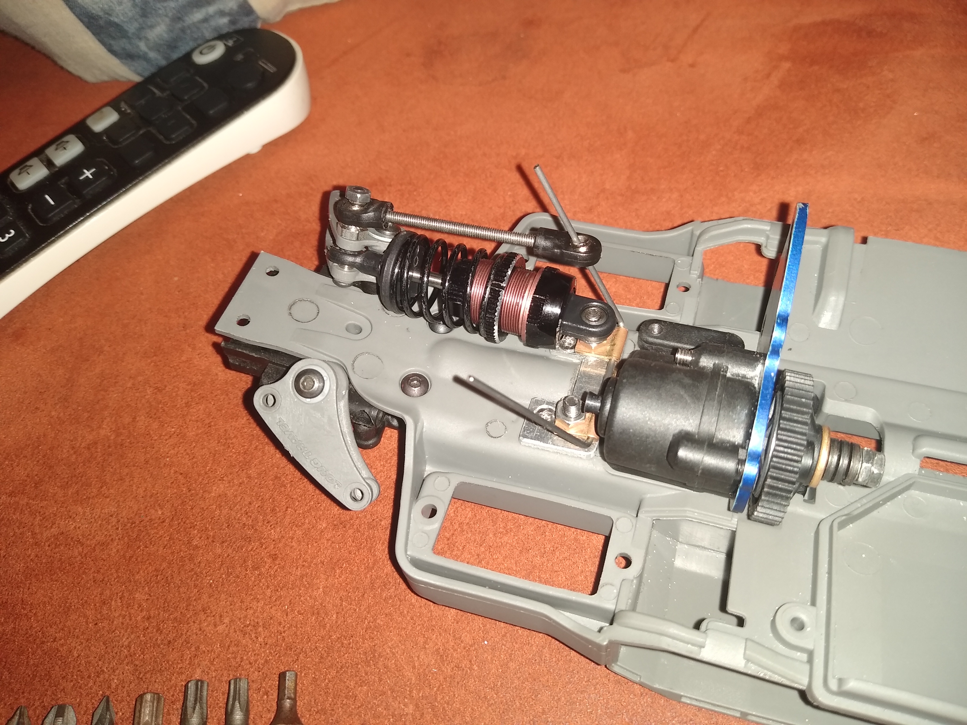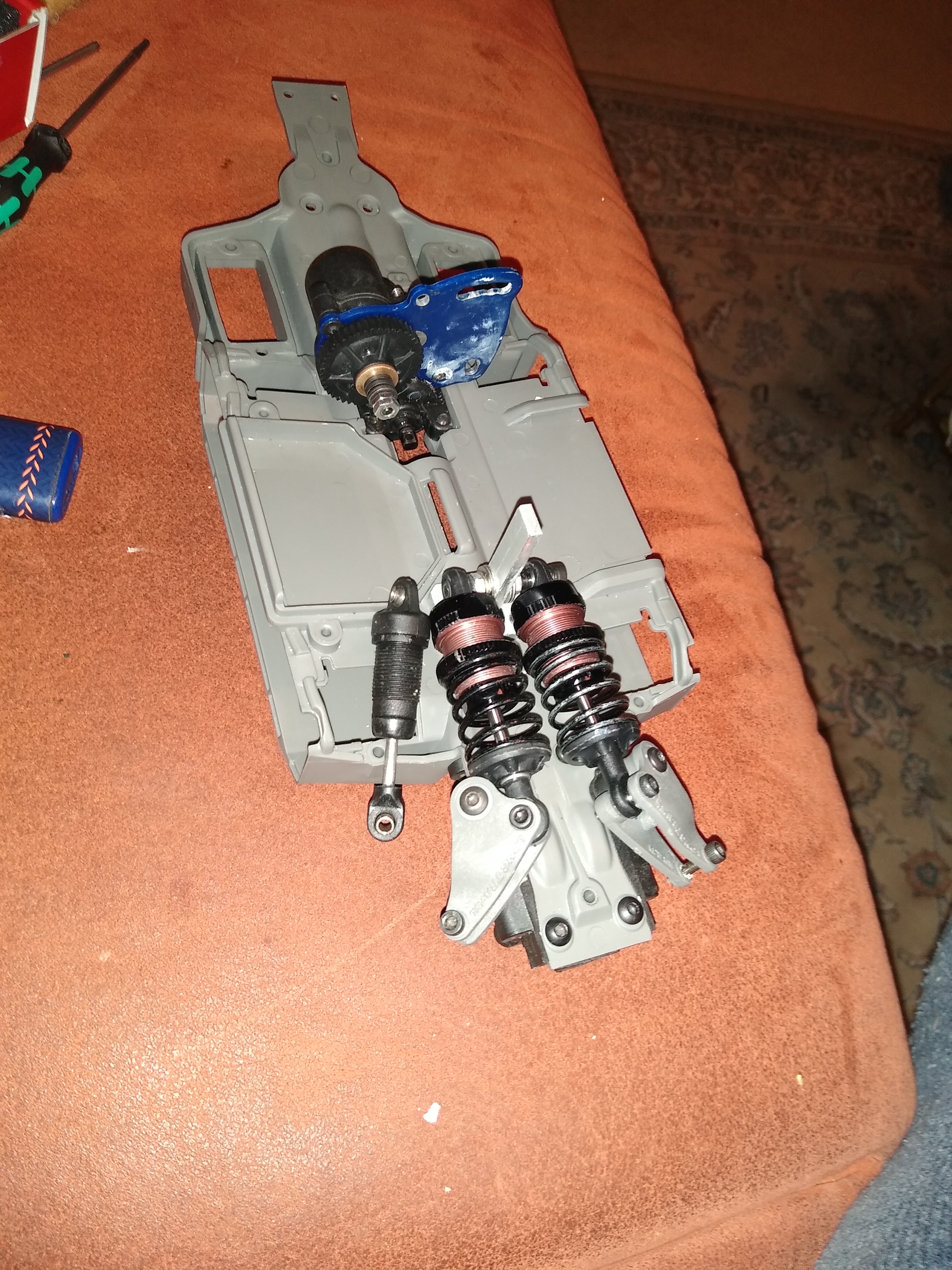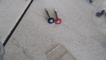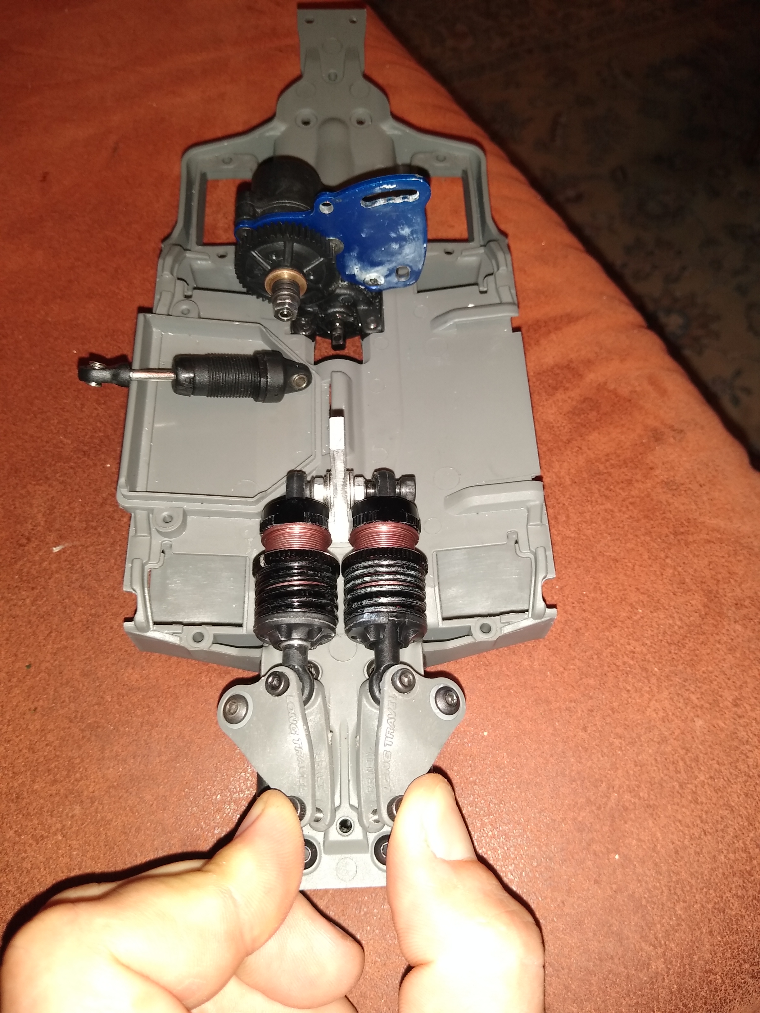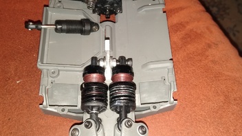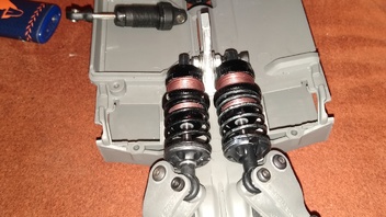 Die roten Dämpferplatten bei den traxxasDämpfern haben eine besser Passung(0.2mm mehr Aussendurchmesser), und scheinen aus härteren Material zu sein. Die Löcher in den Dämpferplatten habe ich auf 1.2mm aufgebohrt, damit ich dickeres DämpferÖl nutzen kann(45wt/575cst...+).