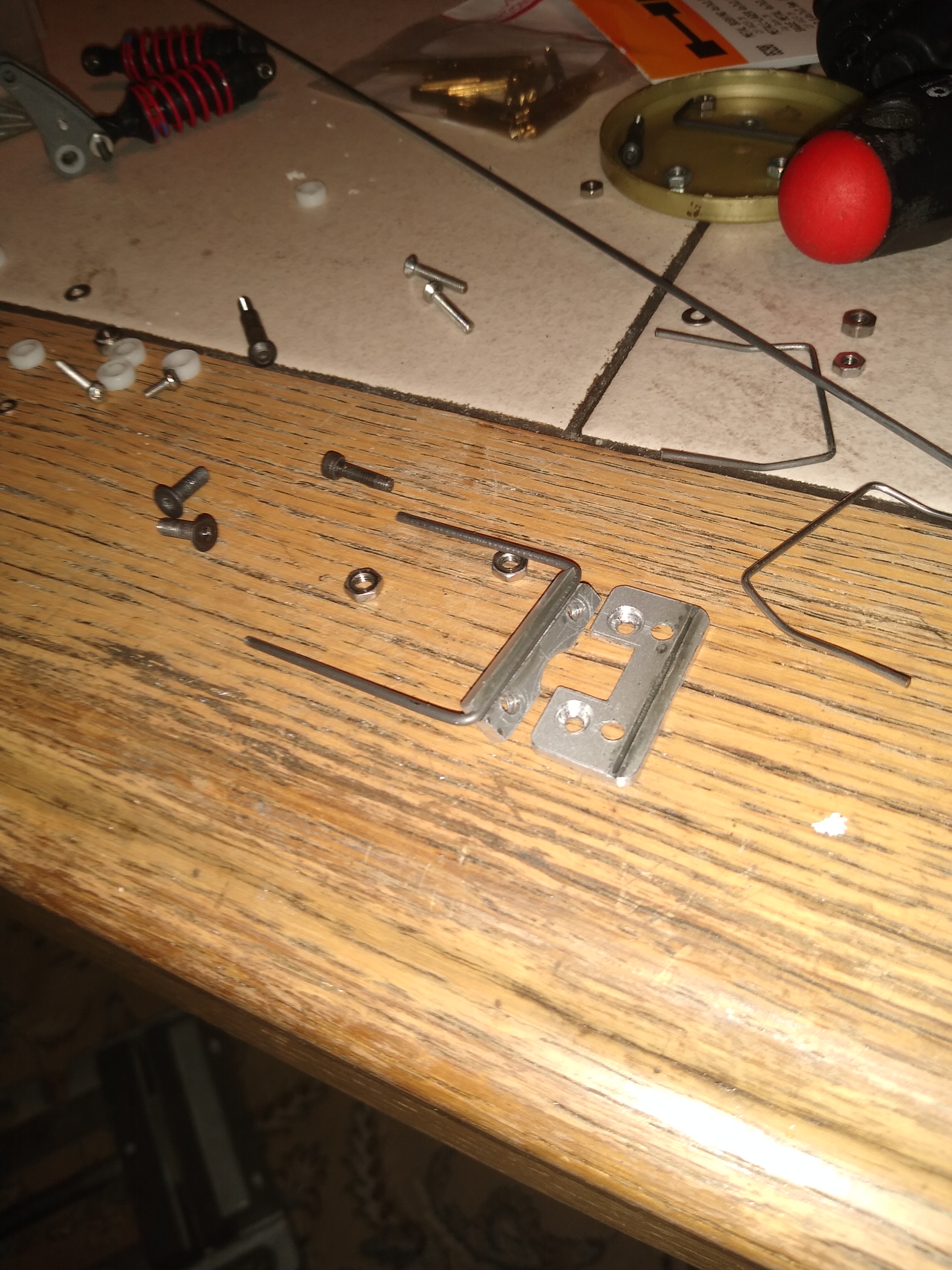 Meine zweiteiligen Stabilager aus dem 0.6mm Messingblech funktionieren leider auch nicht so optimal, weil sie sich beim Festschrauben verdrehen(nicht mehr fluchten), und somit sich die StabiFeder verklemmt. Da muß als ein einteiliges StabiDoppellager hin, wahrscheinlich aus Alu.
