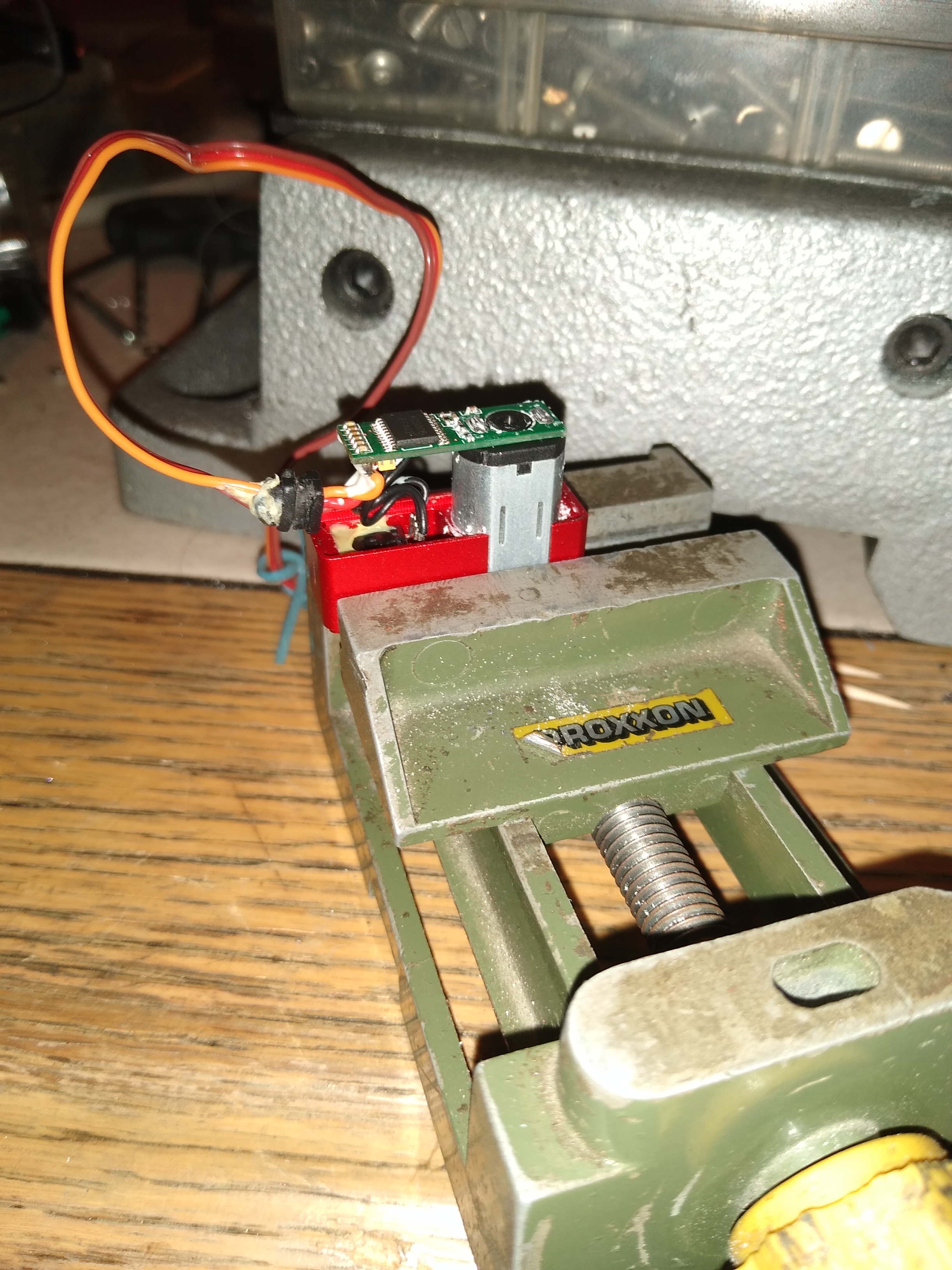 Das mit dem etwas längeren Servohorn werd ich noch Mal probieren, sobald ich ein kleines AluServohorn mit 24T Microverzahnung gefunden habe. Ein normal verzahntes 24T Servohorn passt leider nicht auf die Servowelle.