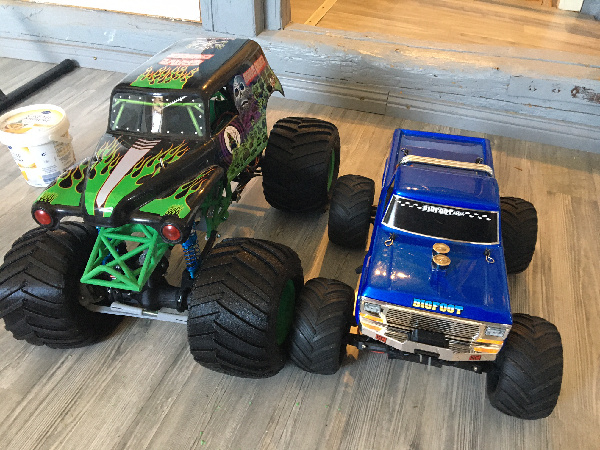 Erstmal zum Auto...na ja, nix gekauftes, sondern 3D selbst gedruckter Monstertruck...gerade auf der Kinderwaage gehabt, wiegt fahrbereit genau 4000g. jeder Reifen mit Felge wiegt je schon 500g.