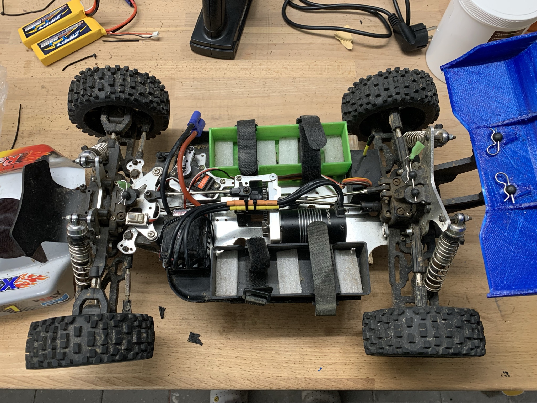 Das seitliche Loch im Motorhalter, um an die Madenschraube zu kommen, stört doch nicht, da an der Stelle die Belastungen auf den Kunststoff am geringsten sind.