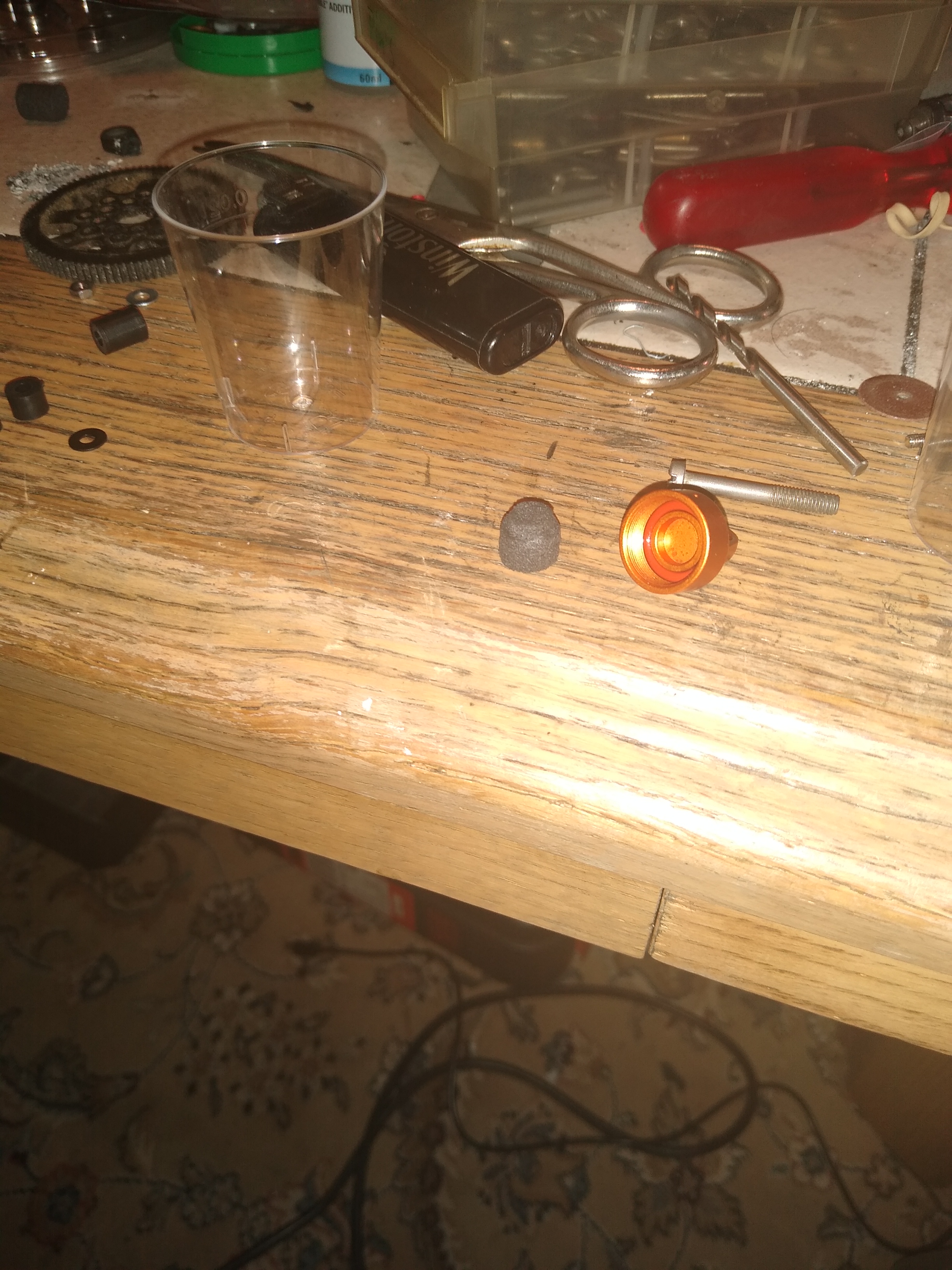 Den Dämpfer habe ich auch gesäubert, und mit 80wt Öl gefüllt. Außerdem war kein Volumenausgleich in dem Dämpfer vorhanden (warum auch immer). Also habe ich ein Stück Moosgummi als Volumenausgleich in den Dämpferdeckel geklebt.