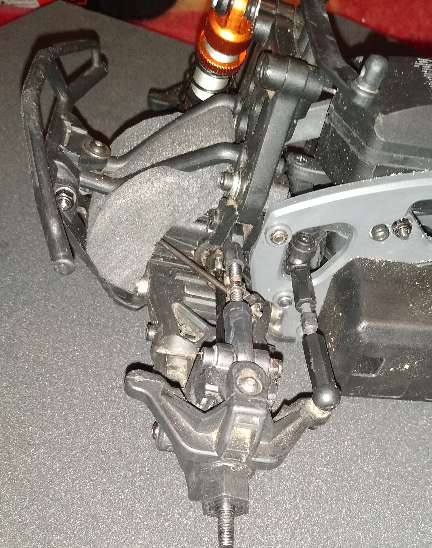 Die Kugelpfannen am Lenkgestänge mußte ich auch etwas frei schneiden, damit sie auch beim voll Einlenken nicht auf dem TVC Rahmen aufsetzen. Kürzere Kugelpfanne mit längerer Gewindestange wäre auch ne Lösung.