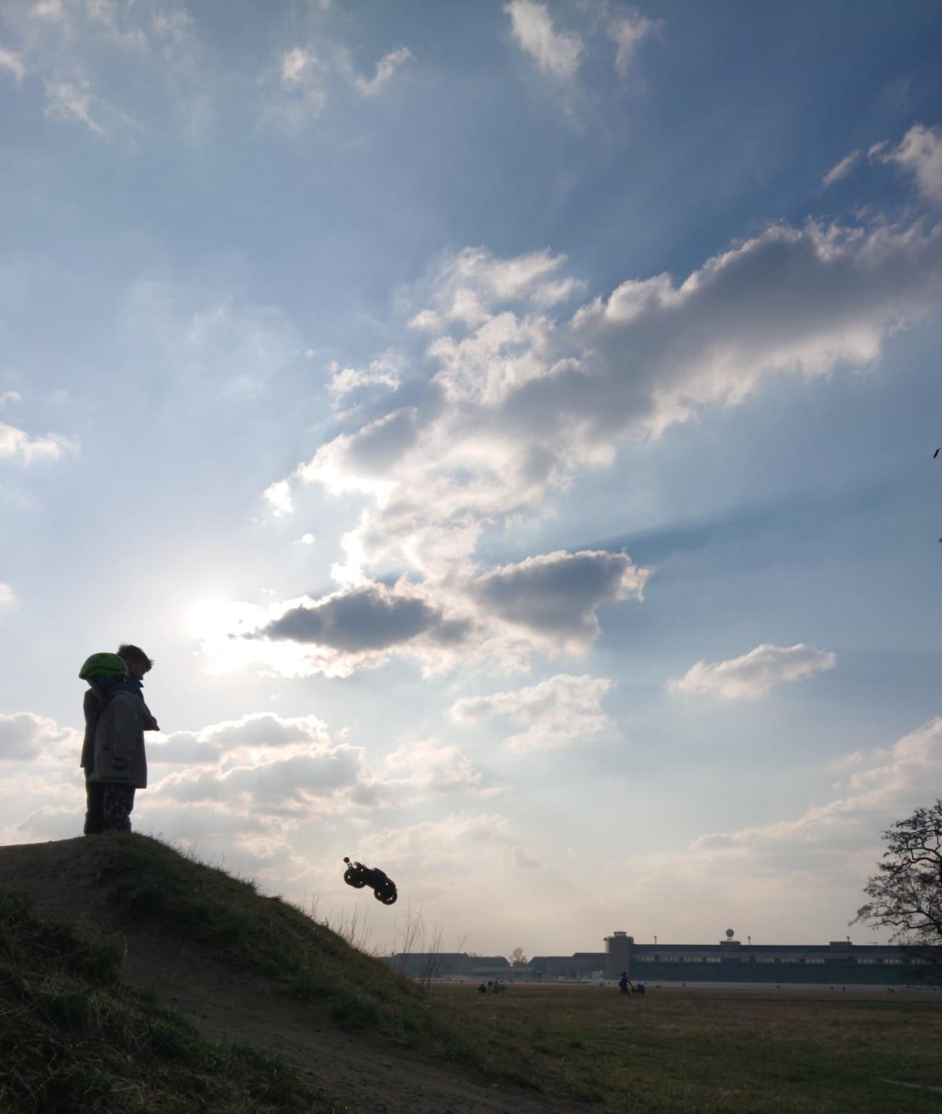 Hier noch ein Foto vom heutigen Belastungstest auf dem Flughafen Tempelhof. Mein kleiner Neffe hat echt alles gegeben. Mehr als die WheelyBar hat er aber nicht kaputt bekommen.