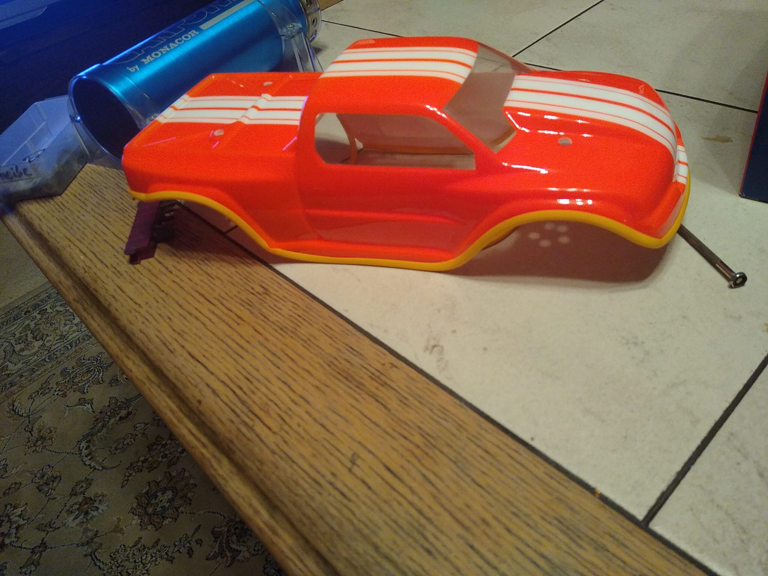 Meine erste selbst lackierte Karo, ist zumindestens schön quitschig NeonOrange geworden. Aber irgendwas hab ich bestimmt falsch gemacht. Oder ist es normal, das innen die Oberfläche so ein "Peeling" bekommt.