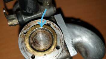 Auf dem Kolbendach sind auch Schlagspuren(Pickel) zu sehen. Die entstehen wenn die Glühwendel abbricht, oder Dreck in den Motor kommt. Die Schleifspuren auf dem Kolben lassen sich besser begutachten, wenn du von der Seite durch den Krümmer Flansch(Auslassfenster) schaust. Was noch auffällt, das die Laufbuchse zu sehr geputzt wurde. Ohne die Ablagerungen(eingebrannte Ölreste) am OT(oberer Totpunkt) ist die Kompression in alten Motoren nicht mehr vorhanden.