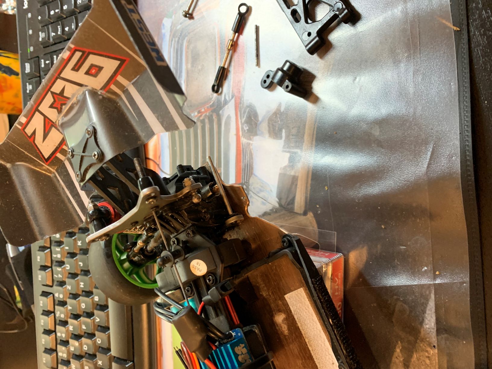 So in der Zwischenzeit hab ich dem Klon von WL-Toys noch ein Surpass Hobby BL-Set und ein kleines Corona-Servo spendiert.
