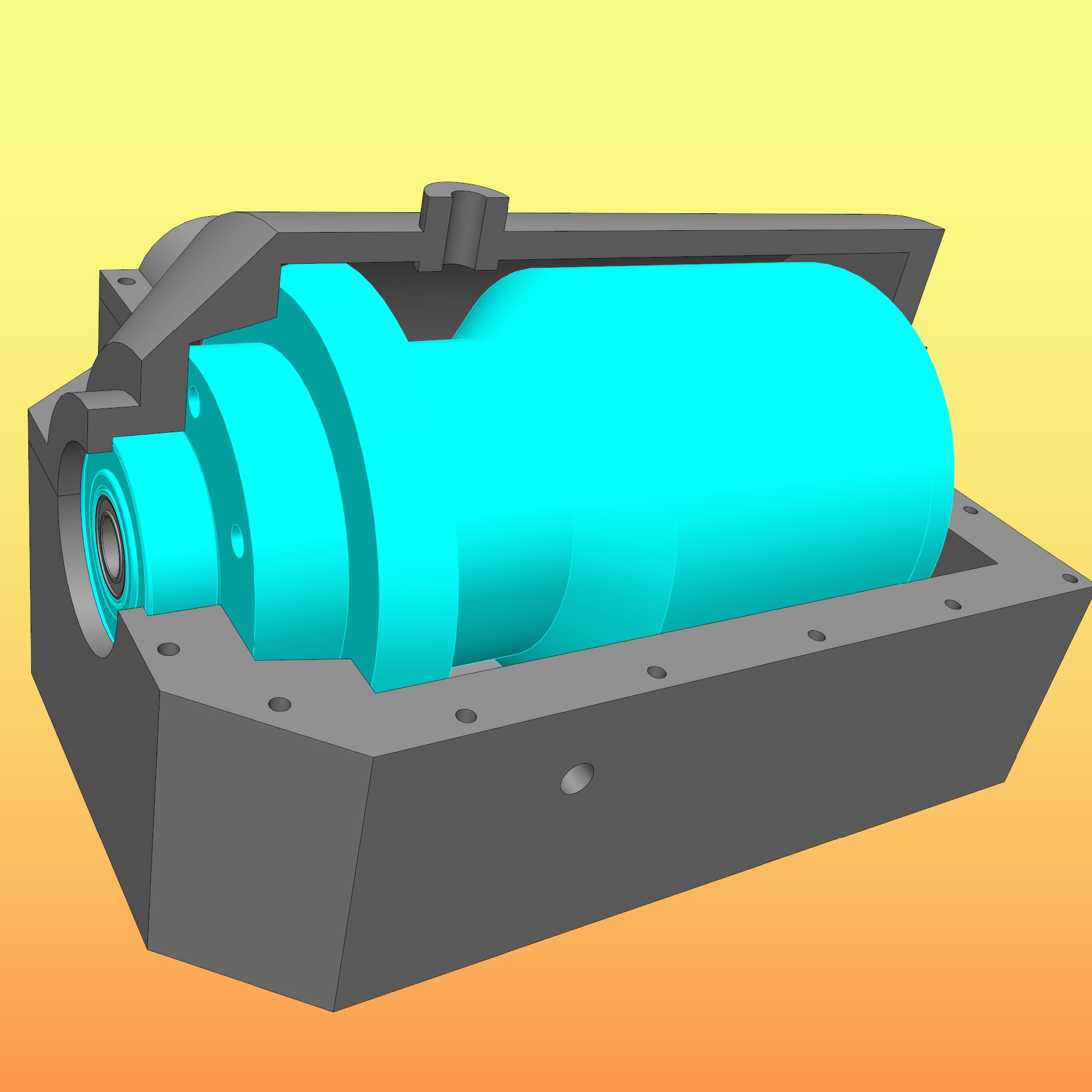 Ein Schnitt durch das Gehäuse mitsamt Deckel...