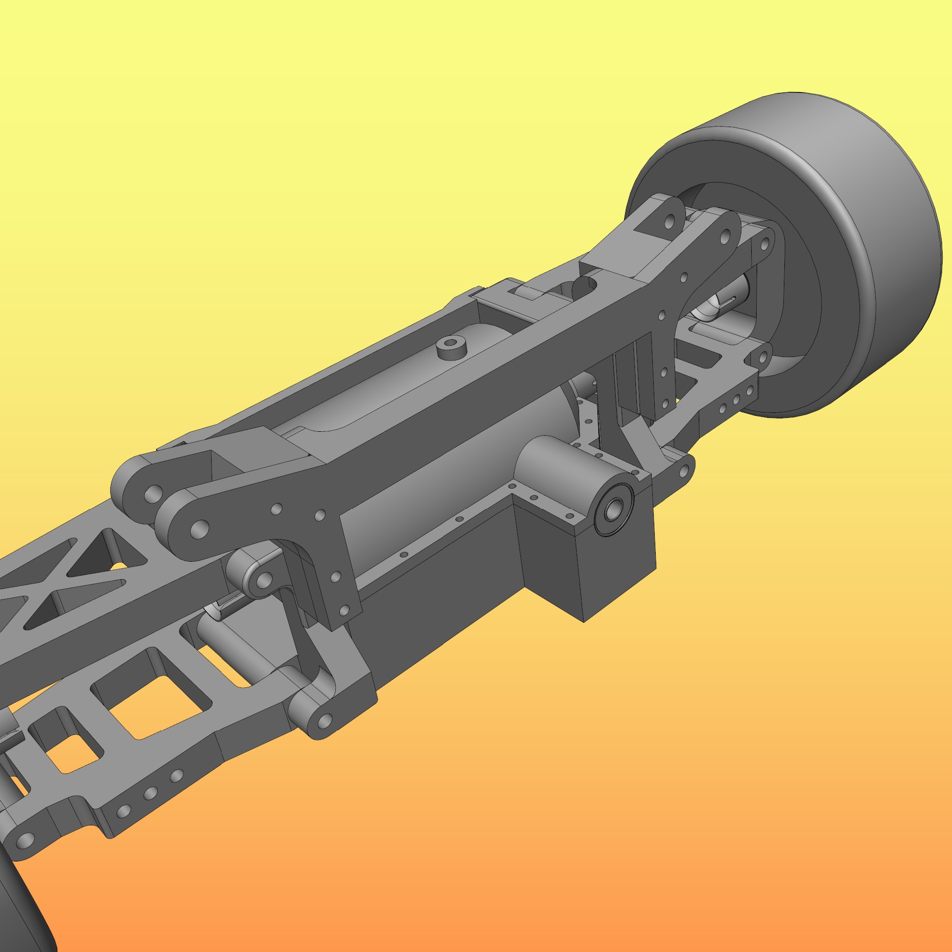 Das Gehäuse war nun noch mal einen Tick schwieriger zu erstellen, denn ich kenne ja weder die Platzverhältnisse im Modell, noch welche Breite oder Bodenfreiheit das Fahrzeug später haben sollte. Eine grobe Richtung - Ja, aber mehr auch nicht. Darum hielt ich das Differentialgehäuse eher "Stand-Alone" und so kompakt wie nur irgendwie möglich. Besonders am Boden feilschte ich um jeden Milimeter, um nicht zu dick nach unten aufzutragen. Was hier zu viel ist, ist später an Bodenfreiheit zu wenig...