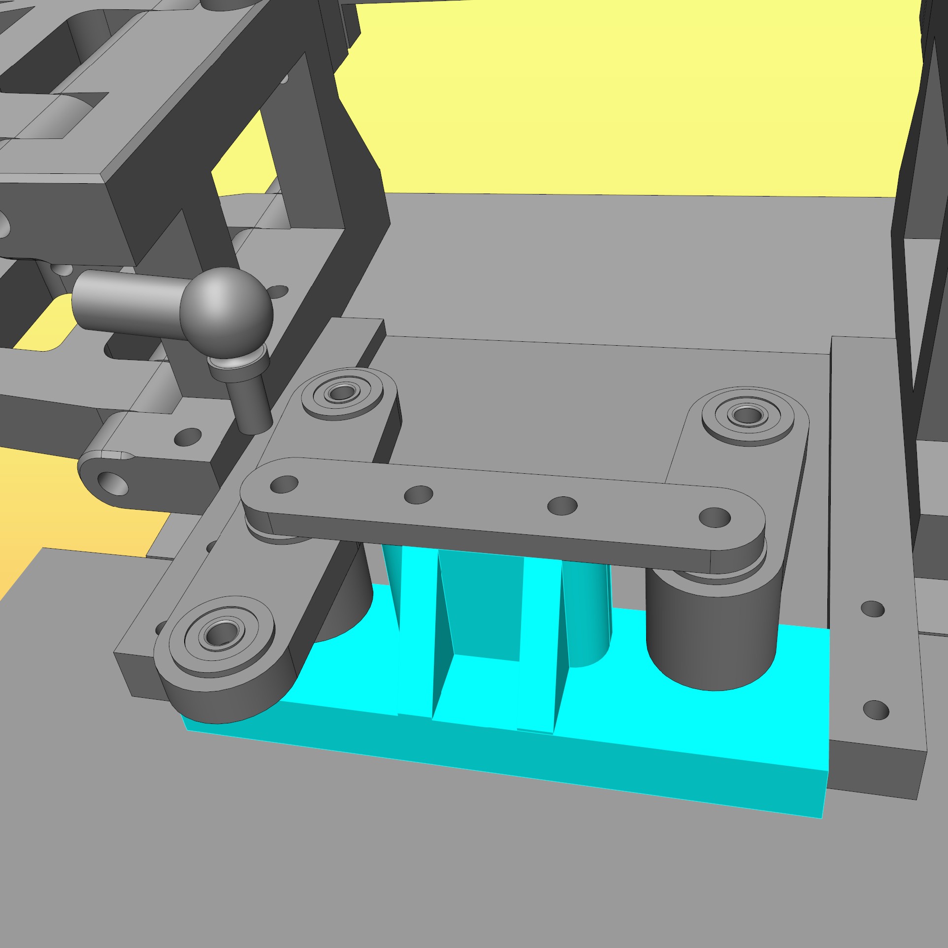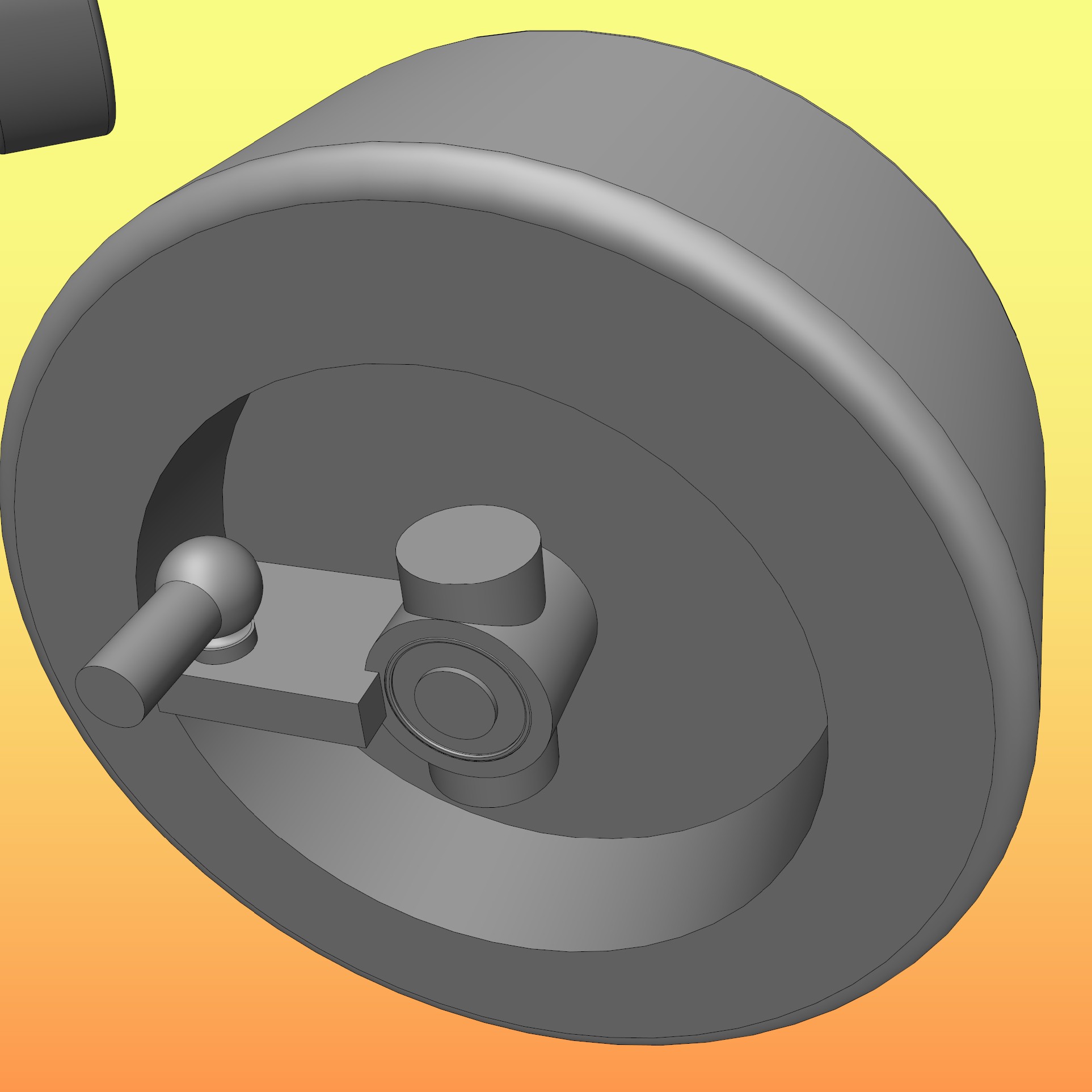Die Glocke selbst musste ich direkt hinter dem Tellerrad ein wenig einziehen, um Platz für das Kegelrad zu gewinnen - es soll schließlich nicht am Gehäuse herumkratzen. Die Spyders hingegen haben einen sehr breiten Bund, den ich nicht unbedingt abrehen wollte. Also - die Glocke auf maximale Breite vergrößern. Hier die gesamte Zeichnung: