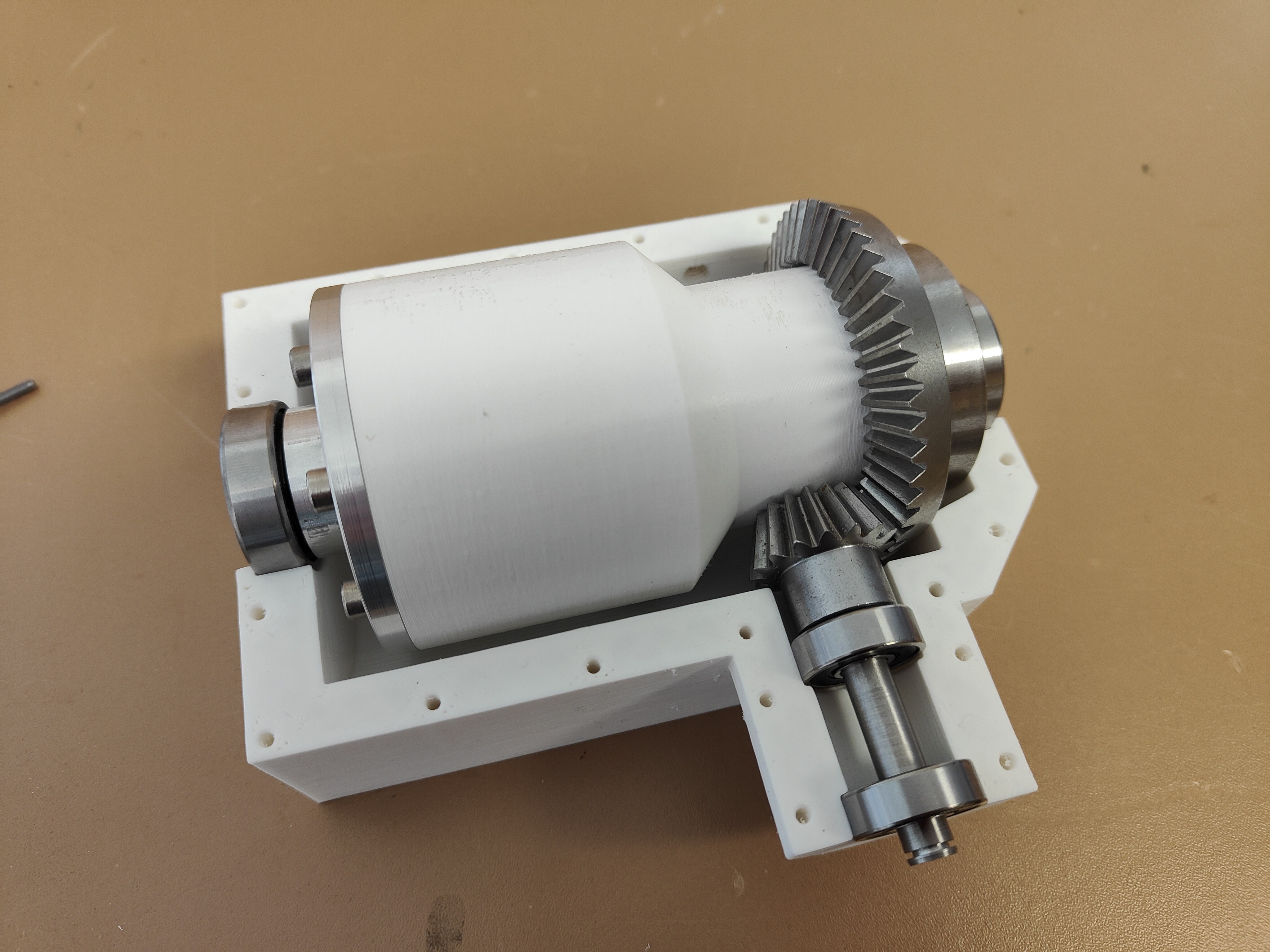 Was du dort oben siehst, ist also alles konventionell hergestellt - bis auf das Tellerrad, das ist gekauft.Dass der Differentialkörper problemlos auf das Tellerrad passt, brauche ich hier sicher nicht erwähnen. Die M4-Gewindebohrungen wurden dort ebenfalls bereits mit eingedruckt und mussten nur noch mit einem M4-Grundgeindebohrer nachgeschnitten werden.
