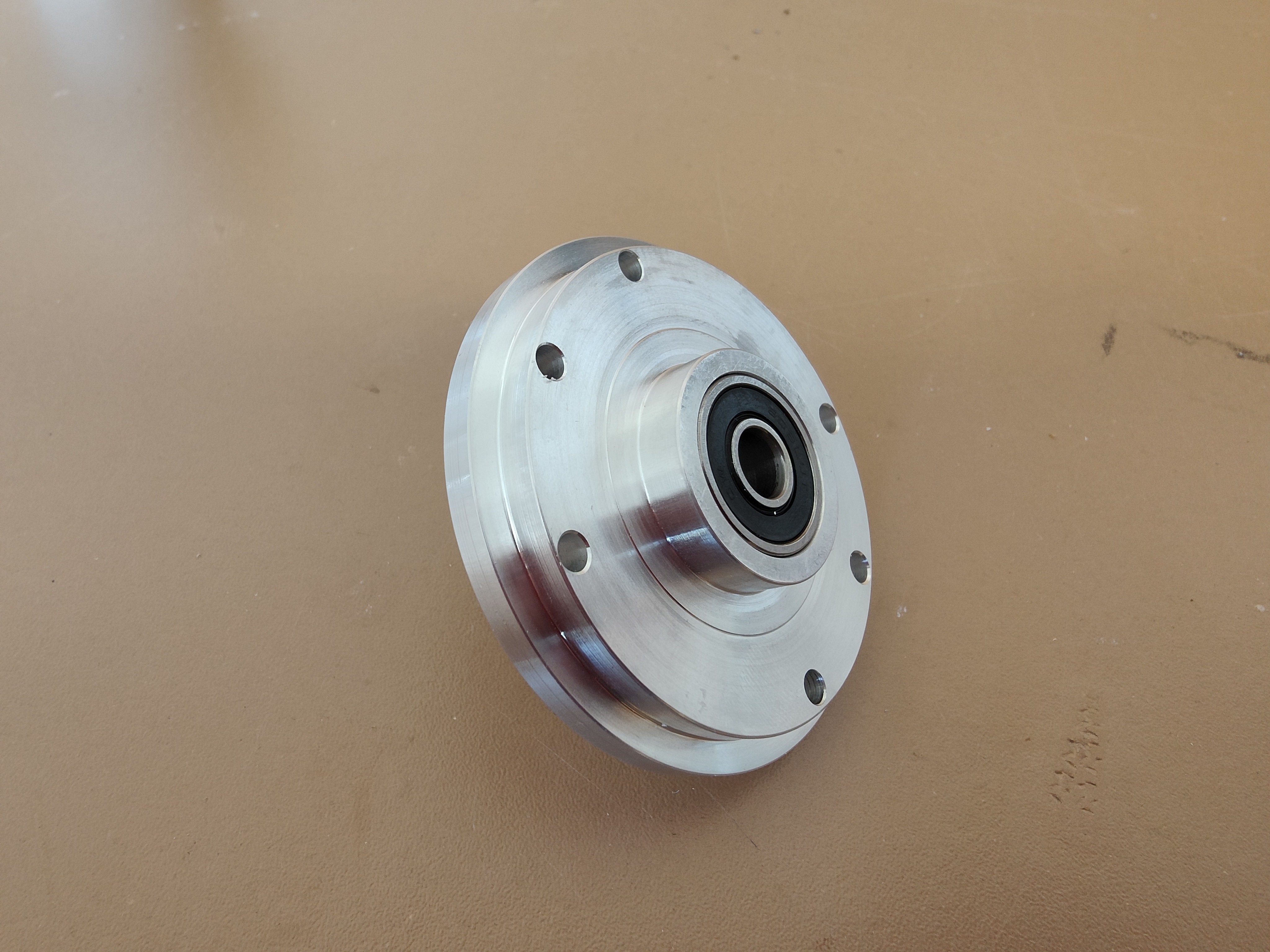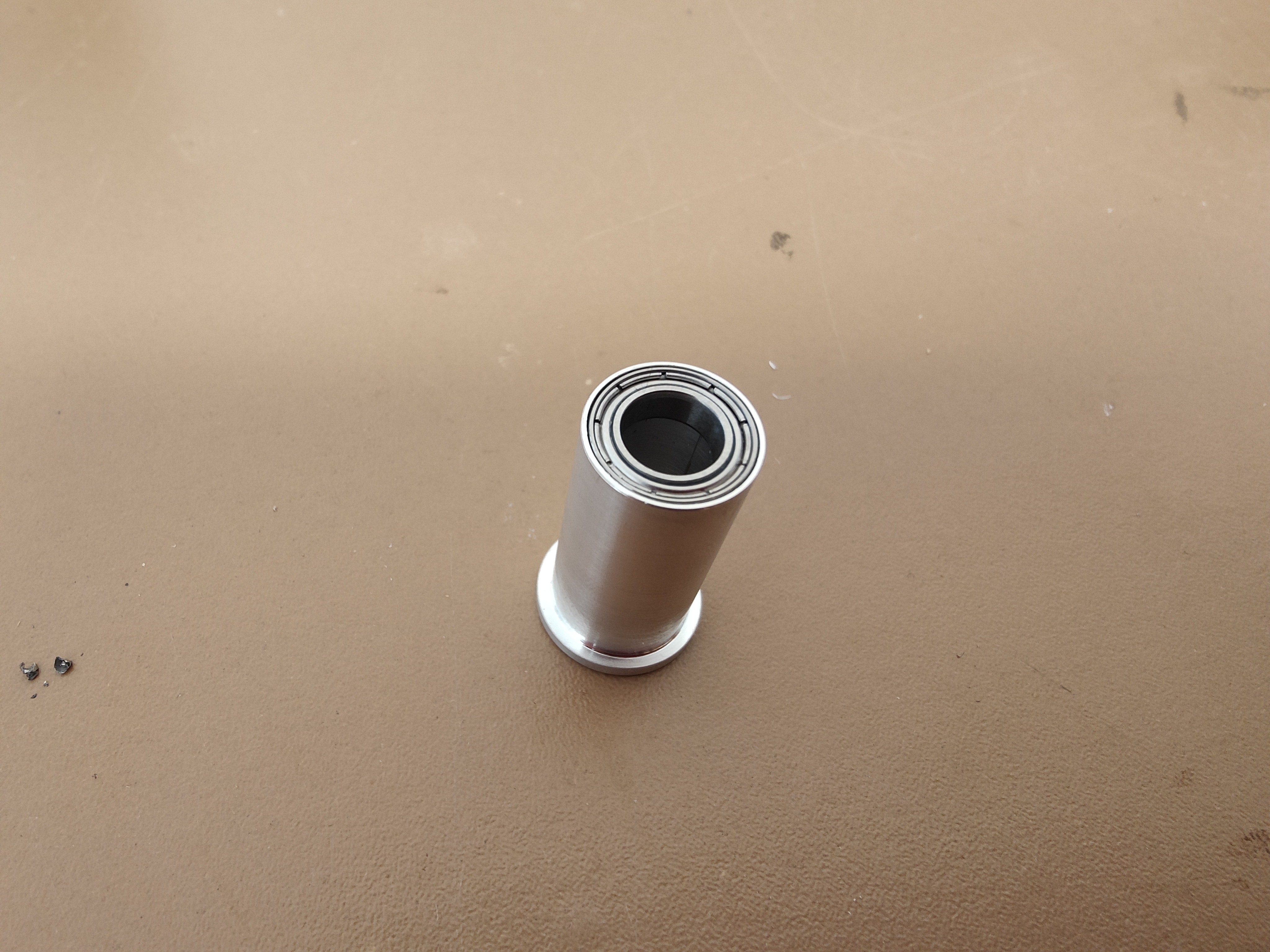 ... in welche auch sogleich das passende MR148 Kugellager eingepresst wurde. Das war soweit alles recht einfach, denn hier konnte bis zum Abstechen alles von einer Seite gedreht werden.