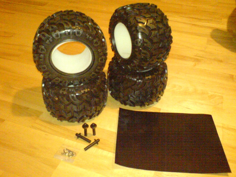 Was war drinn:4xMoab Reifen von Proline,Dekorbogen"Black Carbon" und en paar Karosseriehalter
