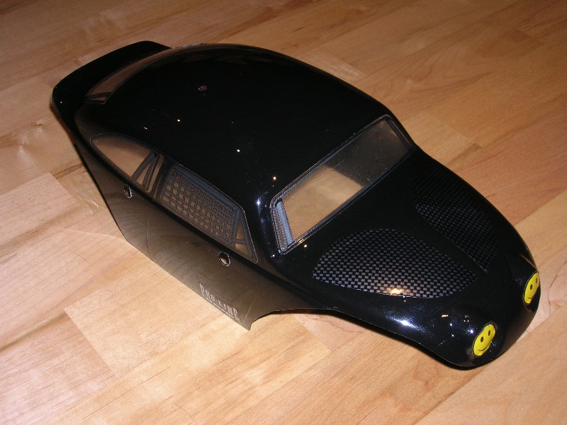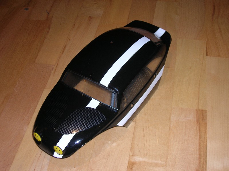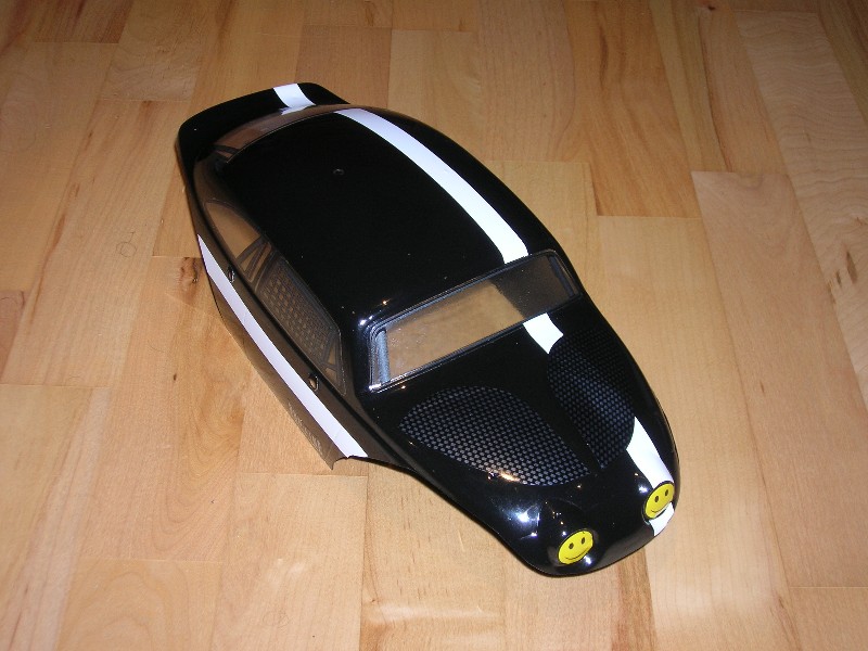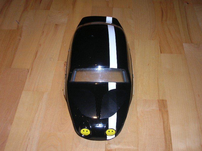 Heute hab ich mal meine Karosse lackiert und beklebt.Is en Kugelporsche(Käfer) geworden.